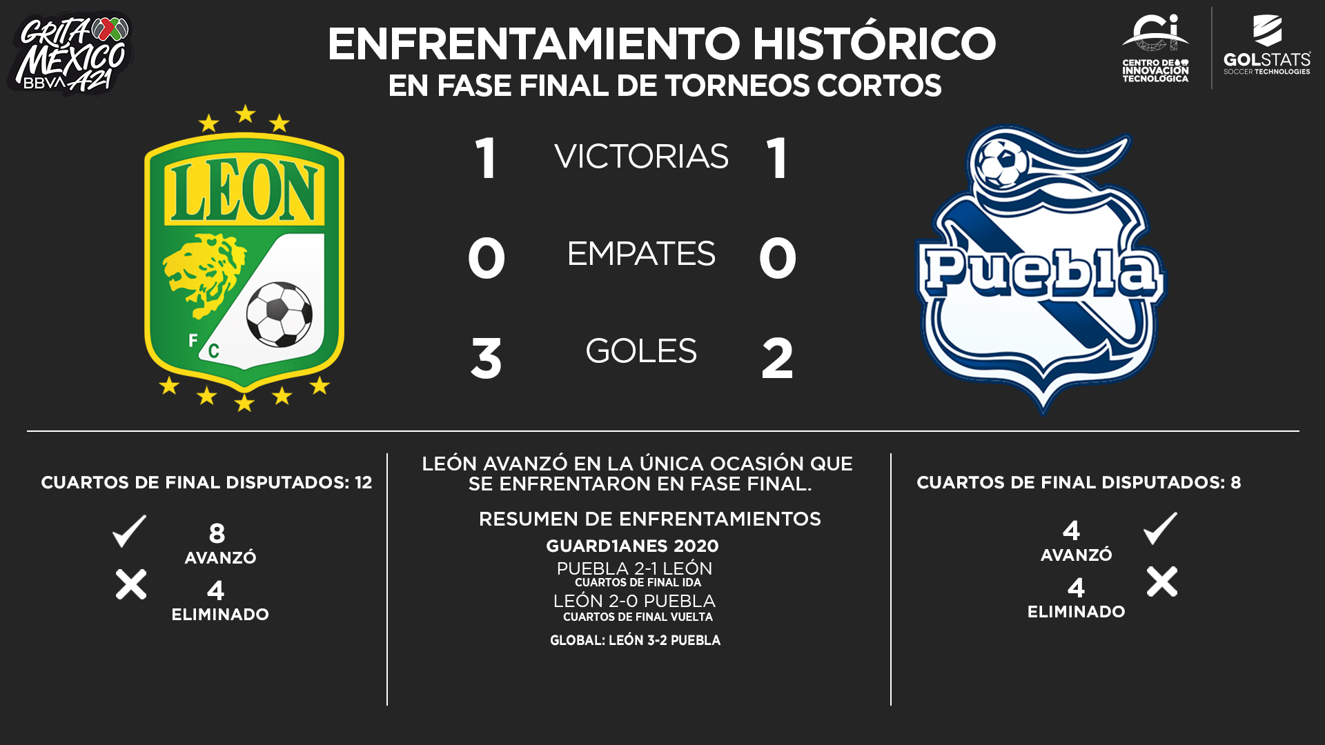 Deportes | Liga MX: Puebla vs León | Mejores momentos EN VIVO | Cuartos de Final Ida Con la euforia a tope tras vencer en el Repechaje a Chivas, Puebla se medirá ante un León que acabó como el tercer lugar del Apertura 2021 y que con Ariel Holan quiere volver a levantar el título Jared López 25 de noviembre de 2021 - 21:00 hs PUEBLA2 ‒ 1LEÓN '90 Se agregan 8 minutos '78 ¡Gooooooooooooooooooooooooooooooooool del Puebla! Maximiliano Araújo condujo el balón hasta las inmediaciones del área, perfiló para su pierna izquierda y sacó un potente disparo cruzado para estremecer las redes del marco leonés. ¡GOL DE PUEBLA! Maximiliano Araujo pone el 2-0#MásAcciónMásDiversión @calientesports te presenta las mejores jugadas mientras apuestas y ganas https://t.co/UvZD9hks6G en #LigaBBVAMx#SacaLaBotana #PueblavsLeón | EN VIVO: https://t.co/gEApC4d058 pic.twitter.com/VtPsj6QCRf — TV Azteca Deportes (@AztecaDeportes) November 26, 2021 '68 ¡Cerca el Puebla! Guillermo Martínez tuvo todo para adelantar al Puebla, pero la dejó ir. Una diagonal retrasada acabó con el disparo del delantero de la Franja, pero el balón fue detenido con los pies de Rodolfo Cota. ¡Atajadón de Rodolfo Cota!#MásAcciónMásDiversión @calientesports te presenta las mejores jugadas mientras apuestas y ganas https://t.co/UvZD9hks6G en #LigaBBVAMx#SacaLaBotana #PueblavsLeón | EN VIVO: https://t.co/gEApC4d058 pic.twitter.com/bLRSa7TbLt — TV Azteca Deportes (@AztecaDeportes) November 26, 2021 '58 ¡Malas noticias para Puebla! Christian Tabó cae al suelo y pide su cambio por una aparente lesión muscular. El charrúa no puede más. '51 ¡Cerca Omar Fernández! El centrocampista colombiano estuvo cerca de aplicar la ley del ex, tras aprovechar una mala salida de la zaga poblana, se acomodó el balón a su pierna derecha y la intentó colgar del ángulo, pero el balón se fue apenas desviado. Inicia el Segundo Tiempo El árbitro silva y el balón vuelve a rodar en la cancha del Estadio Cuauhtémoc. Se vienen los últimos 45 minutos para que Puebla intente ir con ventaja a la vuelta o para que Léon consiga un resultado cómodo para el domingo recibir a los "Camoteros". Final del Primer Tiempo Se terminan los primeros 45 minutos de una primera mitad disputada con mucha intensidad y ya con goles en el marcador. '41 ¡Se salva el Puebla de milagro! En un tiro de esquina, Mosquera sin esperarla la remató de primera intención con la pierna derecha y el balón se fue "besando" el palo izquierdo del marco defendido por Anthony Silva. '36 ¡ Se la pierde Araújo! Christian Tabó le dejó el balón solo frente a Cota a Maximiliano Araújo, y el jugador poblano estrelló la pelota en la humanidad del arquero exrojiblanco. ¡Era la de la ventaja! '33 ¡Se ahoga el grito de gol! Ángel Mena había quedado solo ante Anthony Silva y aunque mandó la pelota al fondo de las redes, la acción quedó invalidada porque en la recepción el ecuatoriano se apoyó en la mano para controlar el esférico. '29 ¡Gooooooooooooooooooooooooooooooool del Puebla! Cuando León todavía festejaba, Puebla lanzó una descolgada y desde adentro del área, Pablo Alejandro Parra remató a puerta vacía y movió las redes para poner la paridad en el marcador. ¡GOL DE PUEBLA! ⚽ Se empató de inmediato el partido#MásAcciónMásDiversión �� @calientesports te presenta las mejores jugadas mientras apuestas y ganas �� https://t.co/UvZD9hks6G en #LigaBBVAMx#SacaLaBotana ������#PueblavsLeón ������| ��EN VIVO: https://t.co/gEApC4d058 pic.twitter.com/0Y2R9EW74G — TV Azteca Deportes (@AztecaDeportes) November 26, 2021 '28 ¡Goooooooooooooooooooooooooooool del Léon! Steven Barreiro aprovecha el mal rechace de la zaga poblana y desde dentro del área, de media vuelta, sacó el disparo de pierna zurda y la mandó guardar. ¡GOL DE LEÓN! ⚽ Stiven Barreiro abre el marcador #MásAcciónMásDiversión �� @calientesports te presenta las mejores jugadas mientras apuestas y ganas �� https://t.co/UvZD9hks6G en #LigaBBVAMx#SacaLaBotana ������#PueblavsLeón ������| ��EN VIVO: https://t.co/gEApC4d058 pic.twitter.com/yPD5VUGYTe — TV Azteca Deportes (@AztecaDeportes) November 26, 2021 '23 ¡Tabó se precipita! El delantero charrúa condujo el balón y aún lejos de la portería, decidió sacar un disparo que aunque llevaba potencia, careció de dirección y se marchó por un lado del marco de Cota. '21 ¡Cota responde con seguridad! Maximiliano Araújo sacó un potente disparo desde los linderos del área, pero Rodolfo Cota estuvo muy atento y en dos tiempos capturó el esférico. ¡Notable y sobresaliente, Rodolfo Cota! ��⚽#MásAcciónMásDiversión �� @calientesports te presenta las mejores jugadas mientras apuestas y ganas �� https://t.co/UvZD9hks6G en #LigaBBVAMx#SacaLaBotana ������#PueblavsLeón ������| ��EN VIVO: https://t.co/gEApC4d058 pic.twitter.com/EmKdIqp0Yk — TV Azteca Deportes (@AztecaDeportes) November 26, 2021 '20 León intenta ser protagonista Ya son 20 minutos de un duelo muy trabado en la mitad del campo. León intenta asumir el protagonismo del encuentro a través de la posesión de la pelota, pero al llegar a tres cuartos de cancha, todos los intentos quedan en nada. Puebla por su parte intenta ser más directo pero tampoco logra generar. '7 Primer intento de Puebla, desviado Juan Pablo Segovia se tuvo confianza y sacó un fogonazo desde afuera del área, pero el balón jamás bajó y se marchó por arriba del marco de Cota. Inicia el partido Ya rueda la pelota en la cancha del Estadio Cuauhtémoc. Puebla se mide ante León en la Ida de los Cuartos de Final. Alineaciones del partido Nicolás Larcamón sabe de la complejidad que hay en enfrentar al León y realiza algunas modificaciones de cara al partido de Ida. Ariel Holan no se guarda nada y manda a lo mejor que tiene disponible a la cancha del Cuauhtémoc. Los Esmeral