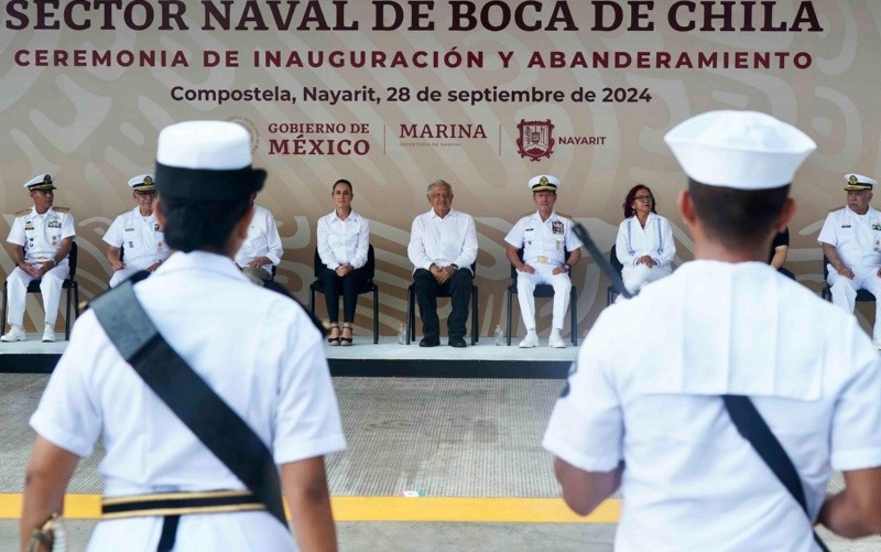 El Presidente de México, Andrés Manuel López Obrador, terminó ayer su gira de transición con la presidenta electa, Claudia Sheinbaum, en un acto donde se puso en marcha el sector naval de Boca de Chila, en Nayarit.Destacó que en el evento, a diferencia de otras ocasiones durante esta gira, no hubo discurso de Claudia Sheinbaum, quien asumirá la presidencia el próximo 1 de octubre.Bajo una lluvia pertinaz, López Obrador encabezó un acto solemne de abanderamiento del sector de la Marina, a cuyo secretario José Rafael Ojeda Durán agradeció y elogió como un “ciudadano ejemplar e incorruptible”.En un breve discurso, el Presidente saliente mencionó su respaldo a Sheinbaum, de quien destacó su histórico triunfo electoral y el símbolo de ser la primera mujer presidenta, y celebró el nombramiento del próximo secretario de Marina, Raymundo Pedro Morales Ángeles, con lo que afirmó “está garantizado el futuro de nuestro pueblo” y patria.Sin embargo, llamó la atención que a diferencia del resto de los eventos de la gira conjunta para supervisar proyectos prioritarios que inició una semana después de las elecciones del 2 de junio, en esta ocasión, Sheinbaum se limitó a escuchar a López Obrador y a Ojeda, y a observar el acto de abanderamiento del sector naval encabezado por el Presidente.En el cierre de la gira, el mandatario entregó a la Marina la obra en el municipio de Compostela para “la vigilancia y seguridad para toda la zona costera del estado de Nayarit, que tiene mucho futuro, sobre todo con el desarrollo turístico”.Por su parte, el secretario de Marina detalló que la zona incluye un batallón de infantería naval, una estación de búsqueda y rescate y vigilancia marítima, una unidad habitacional, una clínica, un hostal y obra portuaria.“Este sector además de permitir el mantenimiento del Estado de Derecho en la zona, contribuye al desarrollo turístico”, destacó Ojeda en un discurso interrumpido por las condiciones del clima.Horas antes del evento naval, López Obrador y su sucesora inauguraron el distrito de riego Alejandro Gascón Mercado en Nayarit, construido en colaboración con ingenieros militares, donde Sheinbaum sí habló y señaló que el país está “viviendo tiempos extraordinarios”.“Llevo casi cuatro meses viajando con el Presidente a todo el país en esto que yo llamo la transición histórica”, recapituló la mandataria electa.Además, Sheinbaum celebró que “en unos años vamos a tener también un texto del Presidente López Obrador para celebrar la grandeza de México”, en referencia al libro que AMLO dijo que comenzará a escribir cuando deje el poder.López Obrador, que concluye su mandato mañana lunes, recordó que ese día, como último acto de Gobierno, se reunirá con la presidenta electa y mandatarios del mundo que asistirán a la investidura de Sheinbaum el martes.EFEEl Presidente López Obrador manifestó que le da tranquilidad que le entregará la banda presidencial a Claudia Sheinbaum a quien calificó como una mujer extraordinaria, excepcional y preparada.El mandatario federal destacó que el pueblo decidió en junio pasado que los gobernara una mujer. “Tiene experiencia, pero además tiene convicciones, viene de abajo, no es una fifí; ni modo, ofrezco disculpas, pero no es culpa mía, es el pueblo de México, así lo decidió”.“El pueblo dijo ‘queremos una gente que nos represente, no queremos a una gente de la élite, a un exquisito, a una exquisita, no queremos a un ladino, a una ladina, queremos a alguien que represente verdaderamente al pueblo, que le tenga amor al pueblo’”, afirmó.ACTO PROTOCOLARIOLA VOZ DEL EXPERTOJosé Joel Peña, profesor de la Universidad Nacional Autónoma de México.José Joel Peña, profesor de la Universidad Nacional Autónoma de México (UNAM), señaló que Sheinbaum enfrentará “varios retos fundamentales que demandan atención inmediata y estratégica”.“En primer lugar, es crucial restablecer las relaciones diplomáticas con actores internacionales de los que el país se ha distanciado, ya sea por la inercia de la propia política exterior o por malos entendidos. Los casos más apremiantes son Ecuador, Perú y, desde luego, España”, consideró el experto en política exterior.Sheinbaum también lidiará con quien gane las elecciones presidenciales de noviembre en Estados Unidos. “Hay grandes diferencias entre Donald Trump y Kamala Harris, pero la presidenta de México se enfrentará a un Estados Unidos con un sentimiento más escéptico de la migración y el libre comercio que en años anteriores, lo que será determinante para la revisión en 2026 del T-MEC, el motor económico del país”. Un pequeño grupo de personas protestó en contra de la reforma judicial en un evento del Presidente Andrés Manuel López Obrador, acompañado por la presidenta electa Claudia Sheinbaum ayer en Tepic, Nayarit.Mientras el jefe del Ejecutivo federal informaba la entrega de proyectos prioritarios y de infraestructura en la Entidad, un grupo de cerca de cinco presuntos trabajadores del Poder Judicial levantaron pancartas en contra del Presidente López Obrador y su reforma judicial.Desde una de las últimas gradas del auditorio, el cual albergó a cerca de 14 mil personas, los manifestantes levantaron cartulinas con la leyenda “Somos el poder que no quiere el Presidente”, “NarcoPresidente”, mientras una mujer gritaba “¡Dictador, dictador!”. De inmediato, la mayoría de los cerca de 14 mil asistentes al Expo Auditorio Amado Nervo repudiaron la protesta y lanzaron gritos a favor de la reforma judicial.Ante esta manifestación, el Presidente López Obrador hizo una pausa en su discurso e hizo una votación a mano alzada en la que ganó el respaldo a la reforma al Poder Judicial y en donde se comprometió a que se respetarán los derechos de los trabajadores del Poder Judicial.