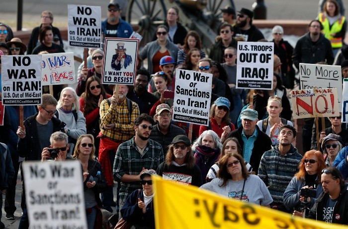Miles de personas se echaron este sábado a la calle en 70 ciudades de EU para pedir la salida de las tropas estadounidenses de Medio Oriente y rechazar el ataque que ordenó el presidente Donald Trump para acabar con la vida del poderoso comandante iraní Qasem Soleimaní.En Lafayette Square, frente a la Casa Blanca, unas trescientas personas se reunieron en el acto central de las protestas.Entre los manifestantes se encontraban la actriz Jane Fonda, que tiene una gran historia de activismo y en los últimos meses ha estado protestando en Washington contra la crisis climática."El movimiento climático y el movimiento pacifista deben convertirse en un único movimiento", dijo Fonda, de 82 años, frente a una multitud que la aplaudía y vitoreaba."La gente más joven debería saber que todas las guerras que se han luchado desde que nacieron, todas, han sido por petróleo (...) No podemos perder más vidas, matar a más personas y arruinar el medio ambiente por petróleo y combustibles fósiles", clamó la actriz.El discurso de Fonda, vestida con un abrigo y gorro negros, fue la antesala de una decena de activistas que, a través de un altavoz, pidieron acabar con el "imperialismo" de EU en el mundo.Entre los participantes, había niños, ancianos y muchos jóvenes que mostraron pancartas que ridiculizaban a Trump, estaban adornadas con flores y símbolos hippies o pedían la retirada de los entre 60 mil y 70 mil soldados estadounidenses desplegados actualmente en Oriente Medio."Trump, la gente dice: no queremos guerra con Irán. Saca las tropas estadounidenses de Iraq", rezaba con letras negras y rojas una de las pancartas principales.Los convocantes de las manifestaciones en todo EU fueron, entre otros, ANSWER Coalition y Code Pink, dos grupos pacifistas que ganaron popularidad después de la invasión de Iraq en 2003.Las ciudades que salieron a las calles incluyeron Nueva York y Miami, donde la participación fue más baja que en Washington.En Nueva York, la protesta fue convocada en la icónica Times Square, junto a las oficinas de reclutamiento del Ejército estadounidense que se alojan en el centro de la plaza, en el conocido monumento de luces rojas, azules y blancas que representan la bandera del país.En las últimas horas, Nueva York ha reforzado su seguridad en lugares clave ante el miedo de que Irán tome represalias por la muerte en un ataque estadounidense en Bagdad de Soleimaní, comandante de la Fuerza Quds de los Guardianes de la Revolución iraní, y del vicepresidente de la Multitud Popular iraquí, Abu Mahdi al Mohandes.Muestra de ese aumento de la seguridad fueron la decena de policías armados que hoy se apostaron junto a los manifestantes, que se contaban por decenas.La presidenta de una de las organizaciones presentes, "Veterans for peace" (Veteranos por la paz), Susan Schnoll, exmilitar de la Marina, dijo a Efe que esperaba que más gente se una a la causa y expresó temor porque, a su juicio, "Estados Unidos está al borde de la guerra con Irán"."Esto es un juego para el presidente Trump", criticó, señalando que el mandatario ha utilizado la Administración que dirige para hacer "lo que él quería", en referencia al ataque a Soleimaní.Entretanto, en Miami, una veintena de personas se reunieron en el monumento de la Antorcha de la Amistad, en el Parque Bayfront, en el centro de la ciudad, para pedir la salida de EU de Iraq y mostrar pancartas con mensajes como: "envíen a los chicos a la universidad, no a la guerra".Mientras las manifestaciones se sucedían en el país, Trump guardó silencio en Twitter, donde se limitó a presumir de sus altos niveles de popularidad entre los republicanos, y jugó al golf cerca de su club privado de Mar-a-Lago, en West Palm Beach (Florida), donde se encuentra pasando las Navidades.Quien sí estuvo muy ocupado fue el secretario de Estado, Mike Pompeo, que ha pasado las últimas horas al teléfono tratando de tranquilizar a los aliados de EU.Este sábado, Pompeo conversó con el primer ministro israelí, Benjamín Netanyahu; el príncipe heredero de Baréin, Salman bin Hamad al Jalifa; y su homólogo turco, Mevlut Cavusoglu, informó el Departamento de Estado. En todas las llamadas, Pompeo defendió la actuación de EU.En términos generales, la Administración está a la espera de ver cuál será la respuesta de Irán, que podría tomar diferentes formas, incluidos ciberataques.Teherán y Washington, que no tiene relaciones diplomáticas desde 1979, han vivido numerosas crisis desde que Trump ordenara en 2018 la salida de EU del acuerdo nuclear de 2015.La escalada de tensión actual está considerada como la más grave y ha despertado el temor a una guerra.JM