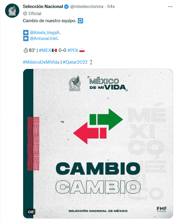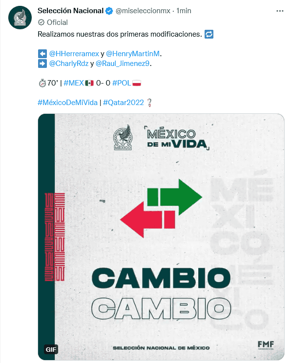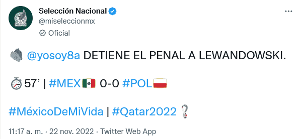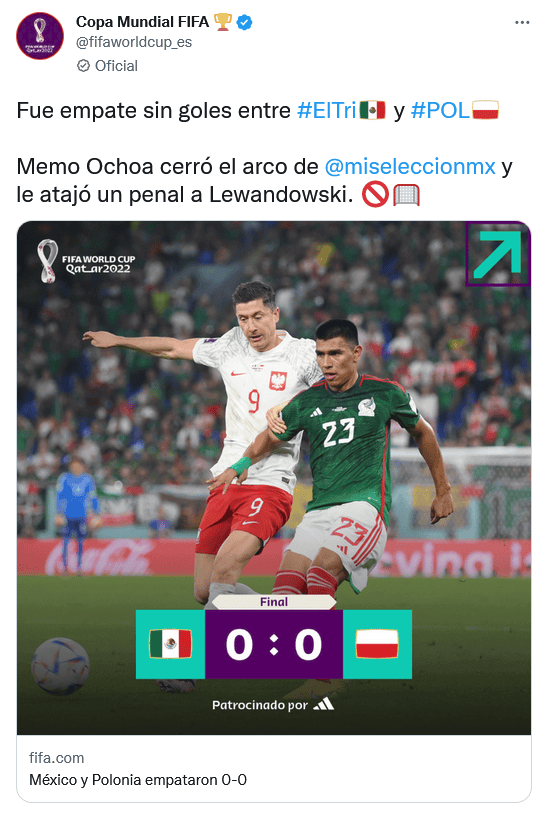 Deportes | México vs Polonia | Momentos destacados EN VIVO | Partido Qatar 2022 | La Selección Mexicana debuta en la Copa del Mundo de Qatar 2022 Oralia López 22 de noviembre de 2022 - 12:00 hs 0 ‒ 0 ¡Se acabó! México y Polonia firman el empate en el Estadio 974 México y Polonia terminaron el partido sin goles, pero con 1 punto en actividades del Grupo C de Qatar 2022. ¡Se agregan 7 minutos! El árbitro agrega siete minutos al tiempo reglamentario. Polonia mueve sus piezas Polonia también acomoda a sus jugadores; sale Piotr Zielinski al 85; entra Arkadiusz Milik. Nuevo cambio de México El Tata Martino realiza un cambio más. Sale Alexis Vega; entra Uriel Antuna. ¡Otra vez Alexis! Alexis Vega pega un cañonazo al 80, pero otra vez el tiro se va desviado. México realiza sus primeros cambios El técnico Gerardo Martino saca a Héctor Herrera y Henry Martin, y en su lugar entran Charly Rodríguez y Raúl Jiménez. ¡Szczesny desvía de forma espectacular! El portero Wojciech Szczesny desvía otro tiro de la Selección Mexicana y el marcador sigue sin goles. ¡Atajadón! Memo Ochoa detiene el penal Robert Lewandowski tira el penal pero Memo Ochoa se crece y ataja el balón. ¡Penal para Polonia! El árbitro australiano decreta tiro de castigo en favor de Polonia al '55. ¡El VAR entra en acción! El árbitro revisa en el VAR un posible penal para Polonia. ¡Chucky intenta de larga distancia! Chucky Lozano le pega de larga distancia, pero el portero polaco ataja bien en el fondo. ¡Comienza el segundo tiempo! Vuelve a rodar el esférico para los 45 minutos del segundo tiempo. México buscará con todo la victoria del partido. Termina el primer tiempo Las selecciones de México y Polonia se van al descanso sin goles. ¡Centro de Lozano! Pero corta la defensa polaca Hirving "Chucky" Lozano envía un centro que termina cortado por la defensa de Polonia al '39. ¡Caaaasi! Alexis Vega remata de cabeza pero el balón se va desviado. ¡¡Inicia el partido!! Tras entonar los himnos nacionales, el árbitro hace sonar su silbato y comienza a rodar la pelota en la cancha del Estadio 974 en Qatar. ¡Estos son los elegidos! Gerardo Martino define el 11 inicial para el debut en Qatar 2022 Temas Selección de Polonia Selección mexicana Futbol Internacional Mundial de Qatar 2022 FIFA Lee También ¿Quiénes son los jugadores a seguir de Argentina Sub-20 de cara al duelo ante México? A aprovechar la oportunidad en estos juegos de preparación: Marcel Ruiz México listo para un nuevo desafío en el Mundial Sub-17 Femenil Hamás dice que recibió garantías de que la guerra en Gaza terminó