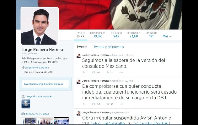 México | Aseguran que los funcionarios podrían ser cesados de su cargo en la demarcación Advierten sanción a panistas en Brasil si son culpables Jorge Romero asegura que los funcionarios podrían ser cesados de su cargo en la demarcación Por: SUN 30 de junio de 2014 - 21:39 hs El panista, Jorge Romero informa a través de su cuenta de twitter que seguirán a la espera de la versión del consulado mexicano. ESPECIAL / CIUDAD DE MÉXICO (30/JUN/2014).- El jefe delegacional en Benito Juárez, Jorge Romero, dijo que en caso de comprobarse cualquier conducta indebida de cualquier funcionario será cesado de su cargo en la demarcación. A través de su cuenta de Twitter, el panista indicó que sigue a la espera de la versión del consulado mexicano en Brasil. Dos de los cuatro aficionados mexicanos detenidos en Fortaleza, Brasil, son funcionarios actuales de la delegación Benito Juárez. Presuntamente tocaron a una mujer y golpearon a su esposo. Sergio Israel Eguren Cornejo es actualmente director general de Desarrollo Delegacional y Rafael Miguel Medina Pederzini es director general de Coordinación de Gabinete y Proyectos Especiales en Benito Juárez. Tanto Eguren Cornejo como Medina Pederzini fueron diputados locales del Partido Acción Nacional en la V legislatura de la Asamblea Legislativa del Distrito Federal (ALDF) del 2009 al 2012. Por su parte, el presidente del Partido Acción Nacional (PAN) en el DF, Mauricio Tabe, informó que se están investigando los hechos ocurridos en Brasil. También a través de su cuenta de Twitter, el líder de los panistas en el DF comentó que "en caso de que se acredité responsabilidad, no toleraremos esas conductas". Al igual que el jefe delegacional en Benito Juárez, Jorge Romero, Mauricio Tabe dijo que están a la espera de las versiones de los involucrados y de las autoridades. Temas PAN Política Brasil Mundial Brasil 2014 Recibe las últimas noticias en tu e-mail Todo lo que necesitas saber para comenzar tu día Registrarse implica aceptar los Términos y Condiciones