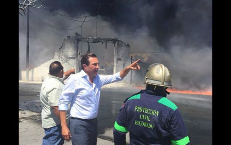 México | El área cercana al lugar fue evacuada y hasta el momento no se reportan lesionados Alertan por incendio en bodega de aceites en Nuevo León El área cercana al lugar fue evacuada y hasta el momento no se reportan lesionados Por: SUN 21 de septiembre de 2015 - 13:45 hs Al lugar acudió personal de Bomberos, Cruz Roja y elementos de seguridad de Escobedo. FACEBOOK / César Cavazos Caballero ESCOBEDO, NUEVO LEÓN (21/SEP/2015).- Cuerpos de emergencia y de seguridad combaten un fuerte incendio registrado en una bodega de aceites en el municipio de Escobedo, Nuevo León. El área cercana al lugar del incidente fue evacuada y hasta el momento no se reportan personas lesionadas, únicamente han sido atendidas algunas crisis nerviosas. Al lugar acudió personal de Bomberos, Cruz Roja y elementos de seguridad de Escobedo y de municipios aledaños. Vía Twitter, las autoridades han pedido a la ciudadanía evitar el área. Temas Incendios Estados Nuevo León Recibe las últimas noticias en tu e-mail Todo lo que necesitas saber para comenzar tu día Registrarse implica aceptar los Términos y Condiciones