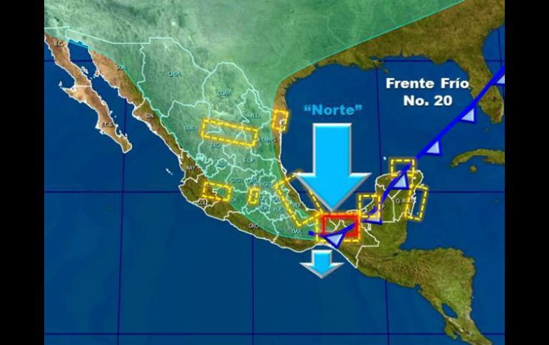 México | La nueva onda gélida ocasionará lluvias muy fuertes y bajas temperaturas Alertan por llegada de nuevo frente frío en próximas horas La nueva onda gélida ocasionará lluvias muy fuertes y bajas temperaturas Por: SUN 24 de diciembre de 2013 - 18:57 hs Prevén la continuidad del frente frío 20 hasta el viernes. TOMADA DE @conagua_clima / CIUDAD DE MÉXICO (24/DIC/2013).- En el transcurso de la tarde-noche de este martes ingresará un nuevo frente frío por el norte de Chihuahua y Coahuila, lo que ocasionará lluvias muy fuertes en Tamaulipas, informó la Comisión Nacional del Agua ( Conagua). También informó que durante los siguientes cinco días el temporal de lluvias afectará Veracruz, Tabasco y Chiapas por lo que el organismo pidió atender los llamados de Protección Civil. Por su parte, el meteorólogo de la Unidad Estatal de Protección Civil (UEPC) de Chihuahua, Salvador Echavarría Campos, informó que 60 de los 67 municipios amanecieron con temperaturas bajo cero, debido a los efectos del frente frío número 20. Refirió que tanto El Vergel como San Juanito son las localidades más heladas, al registrar menos 10 grados centígrados, clima que se mantendrá al menos durante las próximas 48 horas. Abundó que se prevé la continuidad de la masa de aire hasta el próximo viernes, por lo que el termómetro seguirá presentado heladas en prácticamente todos los municipios de la entidad. Respecto a la situación para este martes, descartó la posibilidad de nevadas, además de que se tendrán cielos despejados, lo cual evitará la presencia de precipitaciones pluviales. Temas Conagua Estados Frío Clima Recibe las últimas noticias en tu e-mail Todo lo que necesitas saber para comenzar tu día Registrarse implica aceptar los Términos y Condiciones