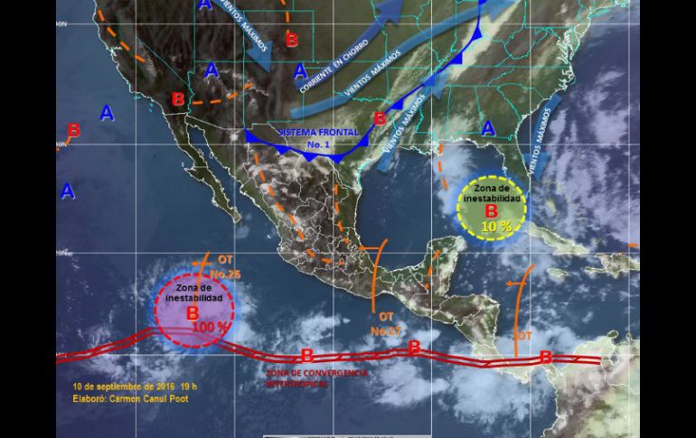 CIUDAD DE MÉXICO (10/SEP/2016).- Este domingo, el sistema frontal 1 se extenderá en el noreste y norte del país, provocando potencial de tormentas puntuales fuertes en Coahuila, y lluvias con intervalos de chubascos en Nuevo León y Tamaulipas.El Servicio Meteorológico Nacional (SMN) informó que en esas entidades habrá vientos con rachas de hasta 50 kilómetros por hora (km/h), y que existe la posibilidad de que se formen tolvaneras, torbellino y tornados.En tanto que un canal de baja presión se extenderá sobre el noroeste, occidente y centro del país, se combinará con la entrada de humedad del océano Pacífico y Golfo de México, ocasionando potencial de tormentas puntuales fuertes en Sonora, Chihuahua, Durango, Sinaloa y Nayarit.Además, provocará lluvias con intervalos de chubascos en Jalisco, Colima, Michoacán, Morelos, Estado de México, Ciudad de México y Puebla; lloviznas en Baja California Sur, Zacatecas, San Luis Potosí, Hidalgo y Tlaxcala.Asimismo, el origen de otro canal de baja presión en el sureste del país originará potencial de tormentas puntuales muy fuertes en Chiapas, Tabasco, Campeche y Quintana Roo, tormentas puntuales fuertes en Veracruz, así como lluvias con intervalos de chubascos en Yucatán.El organismo de la Comisión Nacional (Conagua) también informó que una nueva onda tropical se aproximará a las costas de Quintana Roo, reforzando el potencial de lluvias en dicha región.Finalmente, se prevé que la onda tropical número 27 se localice sobre Guerrero, y junto con la entrada de humedad del océano Pacífico, favorecerán potencial de tormentas puntuales fuertes en esa entidad y Oaxaca.