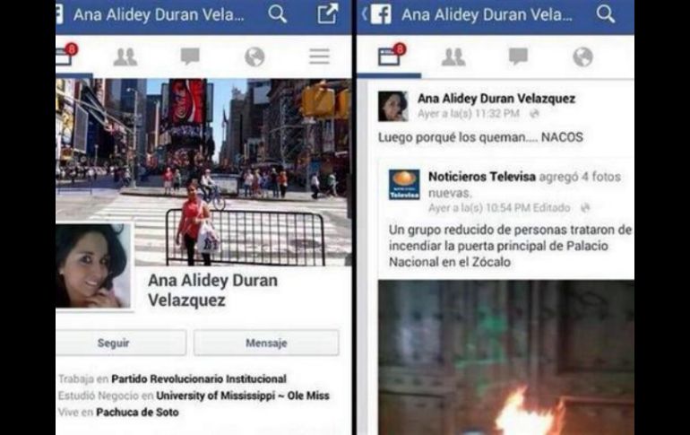 México | La publicación de la llamada 'LadyCaasim' ha ocasionado el descontento de activistas Alistan denuncia contra hija de líder priista por discriminación La publicación de la llamada 'LadyCaasim' ha ocasionado el descontento de activistas Por: SUN 17 de noviembre de 2014 - 15:44 hs A Ana Alidey se le conoció en redes sociales como 'LadyCaasim' por sus comentarios sobre la quema en Palacio Nacional. FACEBOOK / Ana Alidey Durán Velásquez PACHUCA, HIDALGO (17/NOV/2014).- La publicación de comentarios racistas, clasistas y que atentan contra los derechos humanos que han emitido diversas personas ligadas a la política en Hidalgo por el caso de los estudiantes desaparecidos de Ayotzinapa, han ocasionado el descontento de activistas, quienes ya preparan denuncias en contra de la llamada “ LadyCaasim” y el director del CBTIS 8 de Pachuca. Otilia Sánchez, dirigente de la Asociación Civil Constituyente Feminista, dio a conocer su descontento por la aparición de comentarios en Facebook, en donde, dijo, se afectan los derechos humanos de los jóvenes normalistas, además de que se encuentran cargados de clasismo y racismo. La activista recordó la publicación de Ana Alidey Durán Velázquez, a quien en redes sociales se le conoció como LadyCaasim, quien subió a su cuenta de Facebook una fotografía de la quema de la puerta de palacio nacional en la que comentó: "luego por que los queman NACOS....". La ex diputada federal suplente del PRI, Rocío Marili Olguín Cuevas, también ocasionó polémica al postear "A veces creo que yo soy Ayotzinapa, pero mete gol el chicharito y se me pasa!!! No sé si reír o llorar ......matenlos para que no se reproduzcan!!!". Este tipo de señalamientos son realizados por personas carentes de todo sentido de solidaridad, dijo la activista. "Desafortunadamente es gente muy ignorante, poco sensible al dolor de los demás que hacen comentarios imprudentes y que ni siquiera tienen el conocimiento necesario de la situación pero que además no les interesa conocerla porque viven en una situación de bastante comodidad y creen que todas las demás personas tienen las mismas condiciones", declaró. Ya se alistan algunos oficios dirigidos a la escuela donde acude la joven Durán Velázquez en donde se hacen algunas acotaciones a su comentario, así como otro documento para a la delegación de la Dirección General de Educación Tecnológica Industrial (Dgeti) en el que se señala el proceder del director del CBTIS 8 de Pachuca. La identidad del funcionario no fue proporcionada para no entorpecer las acciones, pero la activista afirmó que el directivo prohibió a los estudiantes pronunciarse a favor de los normalistas, por lo que consideró que este tipo de conductas no debe de quedar sin señalamiento. Lamentó este tipo de comentarios, pues además de ofensivos también son reincidentes, pese a la censura. "No puedes emitir opiniones sin conocer las circunstancias y poniendo en frente de sus comentarios el racismo y el clasismo y situaciones que tienen que ver con la discriminación. No sólo ofenden a los estudiantes de Ayotzinapa, sino a todas las personas que nos hemos sumado a la causa de que los entreguen vivos", resaltó. Destacó que los activistas hidalguenses se sumarán a la llamada acción global del día 20, en que se alistan marchas, paros y se ha solicitado a la ciudadanía vestir de negro o colocar moños negros en sus negocios y trabajos. Temas PRI Estados Discriminación Guerrero Escándalos en redes sociales Lee También Trump amenaza con "incremento masivo" de aranceles a China El efecto Donald Trump Ulises Dávila se declara culpable por amaño de partidos Mundial Sub-20: EU golea a Italia y enfrentará a Marruecos Recibe las últimas noticias en tu e-mail Todo lo que necesitas saber para comenzar tu día Registrarse implica aceptar los Términos y Condiciones