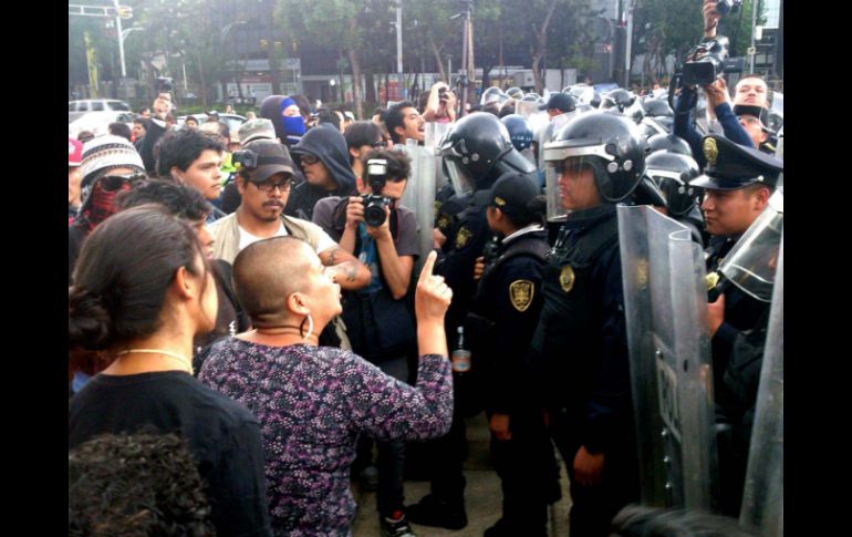 México | Los inconformes protestan por la no privatización de la paraestatal Anarquistas dejan el Ángel; se unen a marcha a Pemex Los inconformes protestan por la no privatización de la paraestatal Por: SUN 1 de julio de 2013 - 20:01 hs Los manifestantes mantenían un mitin en el Ángel de la Independencia en contra de la privatización de Pemex. SUN / CIUDAD DE MÉXICO (01/JUN/2013).- Un grupo de anarquistas que se manifiesta este lunes, abandonó el Ángel de la Independencia y marchó junto con un primer contingente rumbo a la Torre de Pemex. Cuarenta de los punteros realizaron disturbios sobre Río Tíber y Grijalva. En ese sitio se presentaron algunos empujones entre los anarquistas, que como ya es costumbre están ataviados con algunas capuchas para cubrir su rostro. Los jóvenes se apoderaron por espacio de varios minutos del Circuito Interior, pero fueron replegados por los uniformados de la Secretaría de Seguridad Pública del Distrito Federal. En la Torre de Petróleos Mexicanos (Pemex) los inconformes se pronunciaron por la no privatización de la paraestatal. Temas Estados Ciudad de México Manifestaciones en la Cd. de México Lee También Este será el costo del Gas Bienestar en la semana del 13 al 18 de octubre Viral: vendedor de carnitas es detenido por matar a extranjero a tubazos en la CDMX ¿Cuánto cuestan y dónde comprar boletos para el México vs Ecuador? Estos son los centros de acopio en CDMX para apoyar a damnificados por lluvias Recibe las últimas noticias en tu e-mail Todo lo que necesitas saber para comenzar tu día Registrarse implica aceptar los Términos y Condiciones