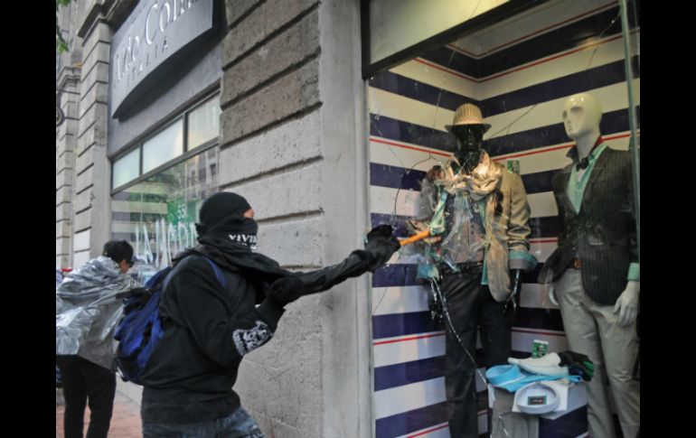 México | Hasta el momento no se reportan detenidos ni enfrentamientos con policías Anarquistas rompen vidrios y saquean tienda en DF Hasta el momento no se reportan detenidos ni enfrentamientos con policías Por: SUN 1 de mayo de 2014 - 16:57 hs Encapuchados rompen cristales de una tienda de ropa. SUN / CIUDAD DE MÉXICO (01/MAY/2014).- Vidrios rotos en dos bancos, robos en una tienda de ropa y pintas con aerosol, son algunos de los daños que causó el contingente conformado por los llamados "anarquistas" en la marcha del 1 de mayo. De acuerdo con reportes de la Secretaría de Seguridad Pública capitalina ( SSPDF) los jóvenes rompieron los cristales de un Bancomer y un Santander, ambos localizados sobre la calle 5 de Mayo e Isabel la Católica. Además, algunos entraron a una tienda para saquearla y rompieron los vidrios. A lo largo de su paso sobre 5 de Mayo realizaron decenas de pintas con aerosol. Hasta el momento no se reportan detenidos ni enfrentamientos con los uniformados. Temas Estados Ciudad de México Día del Trabajo Manifestaciones en la Cd. de México Lee También Desfile de Catrinas 2025 CDMX: Fecha, ruta y hora del tradicional recorrido del Día de Muertos ¿Cuánto cuesta poner una ofrenda para el Día de Muertos 2025? Juan Gabriel en el Zócalo, concierto de Bellas Artes se proyectará GRATIS Artesanías de Jalisco serán incluidas en las próximas roscas de Reyes Recibe las últimas noticias en tu e-mail Todo lo que necesitas saber para comenzar tu día Registrarse implica aceptar los Términos y Condiciones