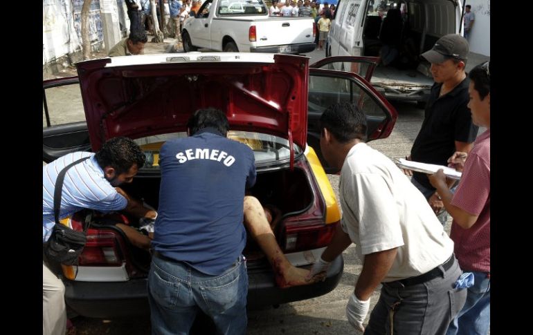 México | Tiempo después de ser 'levantados', jóvenes aparecen muertos Aparecen otros tres ejecutados en Acapulco Tiempo después de que se llevaran a 10 jóvenes de una discoteca de la ciudad, tres aparecieron muertos Por: SUN 9 de enero de 2011 - 11:35 hs Este sábado, se localizaron en un taxi cuatro cadáveres, en Acapulco. EFE / - Encuentran cadáveres de tres personas ejecutadas en Guerrero- Criminales decapitan a 15 personas en Acapulco- Gobernación condena la ola de violencia en Guerrero ACAPULCO, GUERRERO (09/ENE/2011).- Sujetos armados levantaron a tres jóvenes que se encontraban afuera de una discoteca de Acapulco y una hora después fueron encontrados ejecutados, uno de ellos decapitado y mutilado de brazos y rodillas, mientras que el segundo fue colgado de un puente peatonal en la colonia Benito Juárez, en la zona suburbana del puerto. De acuerdo con versiones de testigos presenciales de los hechos, informaron que los tres jóvenes, uno de ellos promotor de la discoteca “Alebrije”, estaban afuera del antro cuando fueron levantados por varios sujetos armados que llegaron en camionetas de lujo y se los llevaron con rumbo desconocidos alrededor de las 5:00 o 6:00 de la mañana. Más tarde, al servicio de emergencia 066 se reportó que a la altura del puente de la colonia Benito Juárez, que se ubica sobre la carretera federal Acapulco-México estaban los cuerpos de tres personas uno de ellos decapitado, otro ejecutado y uno más colgado del puente pero que debido al peso la cuerda se rompió y cayó sobre la carretera. Alrededor de las 07:30 de la mañana, llegaron al lugar elementos del ejército, policía preventiva y policía estatal donde encontraron el cuerpo de un joven de aproximadamente 18 años, decapitado y su cuerpo mutilado de los brazos y rodillas envuelto en una bolsa negra. El segundo cadáver de complexión robusta y fue identificado por su familiar como Diego Francisco Flores Medina de 26 años de edad y trabajaba como promotor de la discoteca “Alebrije”, fue colgado del puente peatonal pero debido al peso, la cuerda reventó y el cuerpo cayó sobre la cinta asfáltica. El cuerpo de Diego Francisco tenía un balazo en la cabeza El tercer cadáver de aproximadamente 18 años de edad, tenía varios impactos de bala en el cuerpo y vestía pantalón azul de mezclilla y traía dos playeras una blanca y otro color naranja. Extraoficialmente se informó y de acuerdo con versiones de testigos presenciales de los hechos, que los sujetos armados se llevaron a 10 jóvenes que estaban afuera de la citada discoteca, donde tres aparecieron muertos. Temas Crimen Organizado Estados Guerrero Lee También El precio de la paz en Gaza Lluvias dejan 29 muertos en un día en México Trump anuncia aranceles del 100% para China por su postura comercial 'hostil' Detienen a Miguel Ángel 'N', vinculado por el homicidio del sacerdote Bertoldo Pantaleón Recibe las últimas noticias en tu e-mail Todo lo que necesitas saber para comenzar tu día Registrarse implica aceptar los Términos y Condiciones
