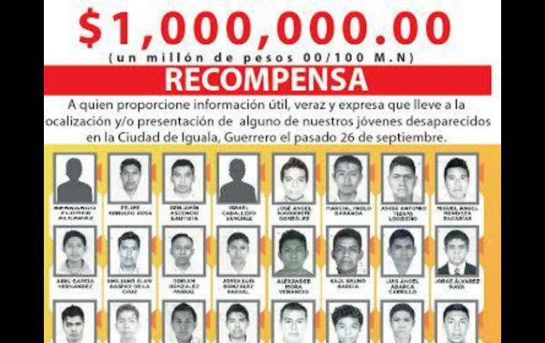 México | El gobierno de Guerrero emprende la campaña para localizar a los jóvenes Arman campaña #HastaEncontrarlos por normalistas desaparecidos El gobierno de Guerrero emprende la campaña para localizar a los jóvenes Por: EL INFORMADOR 3 de octubre de 2014 - 17:54 hs El gobierno de Guerrero ofrece una recompensa a quien proporcione información para localizar a los normalistas. TWITTER / @portalguerrero GUADALAJARA, JALISCO (03/OCT/2014).- El gobierno de Guerrero emprendió una campaña para localizar a los 43 normalistas desaparecidos tras la violencia vivida la noche del 26 se septiembre en Iguala usando el lema # HastaEncontrarlos. La campaña de búsqueda la emprendió el Gobernador de Guerrero, Ángel Aguirre luego de usar su cuenta de Twitter para ofrecer una recompensa para quienes proporcionen información que les lleve a saber qué ha sucedido con los desaparecidos. La orden se giró al personal de todas las áreas de gobierno de Guerrrero, quienes han salido a las calles para visitar casa por casa y recabar buscar información que ayude a la pronta localización de los normalistas. Mientras tanto, en redes sociales la búsqueda sigue y el hashtag #HastaEncontrarlos se ha ubicado en tendencia nacional en las últimas horas. El evento que donde se originó la desaparición sucedió el pasado 26 de septiembre de 2014 en la ciudad de Iguala, cuando cerca de 80 normalistas iban a bordo de tres autobuses de pasajeros y que más tarde fueron baleados por la Policía Preventiva Municipal. De este ataque le siguió otro similar pero ahora a cargo de personas no identificadas, que en total ha dejado la cifra de seis personas fallecidas y casi una veitena de heridos. En el lugar, tres patrullas se llevaron a los 43 normalistas de los que hasta ahora se desconoce su paradero. EL INFORMADOR / CAROLINA QUINTANILLA Temas Estados Guerrero Desapariciones y denuncias Lee También ALERTA en Jalisco por formación de ciclón "Raymond" Esta es la última guerra que Trump resolvió, según él mismo Las guerras que Trump dice haber resuelto y por las que merece el Nobel ¿Cuándo la tormenta tropical "Raymond" estará cerca de Jalisco? Recibe las últimas noticias en tu e-mail Todo lo que necesitas saber para comenzar tu día Registrarse implica aceptar los Términos y Condiciones