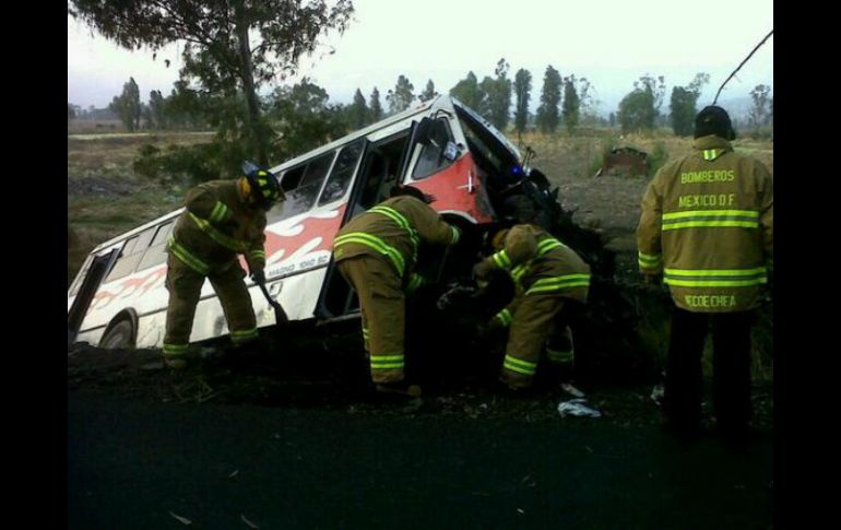 México | Un helicóptero ha bajado para trasladar a un pasajero que se encuentran grave Autobús vuelca en carretera Tláhuac-Chaco; deja 17 heridos Un helicóptero ha bajado para trasladar a un pasajero del autobús que se encuentran grave Por: NTX 8 de abril de 2014 - 07:57 hs CHALCO, ESTADO DE MÉXICO (08/ABR/2014).- Al menos 17 personas lesionadas es hasta el momento el saldo de la volcadura de un autobús de pasajeros sobre la carretera Tláhuac-Chalco, en los límites del Estado de México y el Distrito Federal, reportó Protección civil de Chalco. Informó que la unidad se volcó y se fue hacia una cuneta que se encuentra en el punto. Paramédicos de la Cruz Roja, así como personal de cuerpos de rescate de Chalco y Tláhuac trabajan en la zona, hasta el momento se reportan 17 personas heridas, un helicóptero ha bajado en la zona para trasladar aun pasajero del autobús que se encuentran grave. La circulación sobre esta carretera se encuentra cerrada. Temas Estados Accidentes México Ciudad de México Estado de México Recibe las últimas noticias en tu e-mail Todo lo que necesitas saber para comenzar tu día Registrarse implica aceptar los Términos y Condiciones