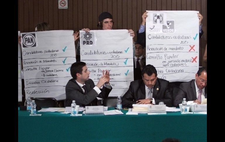 México | Dejan fuera reelección de alcaldes, veto presupuestal y la reconducción de presupuesto Avalan dictamen de Reforma Política en comisiones Tras una maratónica sesión dejan fuera reelección de alcaldes, veto presupuestal y la reconducción de presupuesto Por: NTX 13 de octubre de 2011 - 09:49 hs Un grupo de jóvenes se manifestaron durante la discusión de las reformas constitucionales. NOTIMEX / CIUDAD DE MÉXICO (13/OCT/2011).- Las comisiones unidas de Puntos Constitucionales y de Gobernación de la Cámara de Diputados rechazaron el veto presupuestal y la reconducción del presupuesto, propuestos en la minuta del Senado de la República para la reforma política. En la discusión de las reservas del dictamen de dicha reforma tampoco avalaron que los congresos locales puedan decidir en torno a la reelección consecutiva de presidentes municipales. Pero votaron a favor de una consulta popular para que la ciudadanía sea la que decida si quiere o no la reelección consecutiva de legisladores. Aprobaron que los ciudadanos puedan presentar iniciativas y que el presidente de la República tenga la facultad de impulsar iniciativas preferentes, es decir, que al inicio de cada periodo ordinario de sesiones podrá mandar hasta dos propuestas de ley, que la Cámara de origen deberá discutir y votar en un plazo máximo de 30 días. En una sesión de más de 15 horas, los legisladores desahogaron las 23 reservas que se hicieron a diversos artículos del dictamen. Temas Poder Legislativo Cámara de Diputados Reforma Política Recibe las últimas noticias en tu e-mail Todo lo que necesitas saber para comenzar tu día Registrarse implica aceptar los Términos y Condiciones