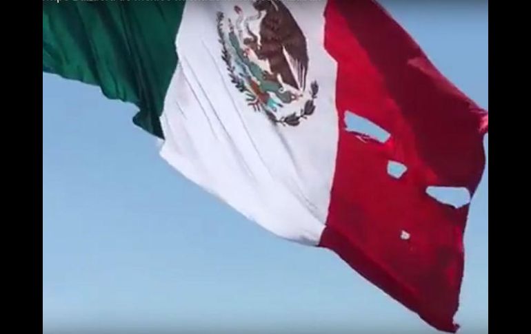 CIUDAD DE MÉXICO (24/FEB/2017).- Al iniciar la ceremonia por el Día de la Bandera, encabezada por el Presidente Enrique Peña Nieto, se registró un accidente en el momento en que el mandatario izó la Bandera Monumental del Campo Marte.Al comienzo de esta ceremonia oficial el Mandatario, acompañado por integrantes de su gabinete, activó el mecanismo para izar el Lábaro Patrio.En el ascenso, la Bandera Nacional se enredó en una estructura de iluminación. Conforme fue subido el lienzo, tiró la estructura hasta derribarla. La Bandera Nacional se rasgó.Ninguno de los invitados al evento estuvo en riesgo por este acontecimiento.
