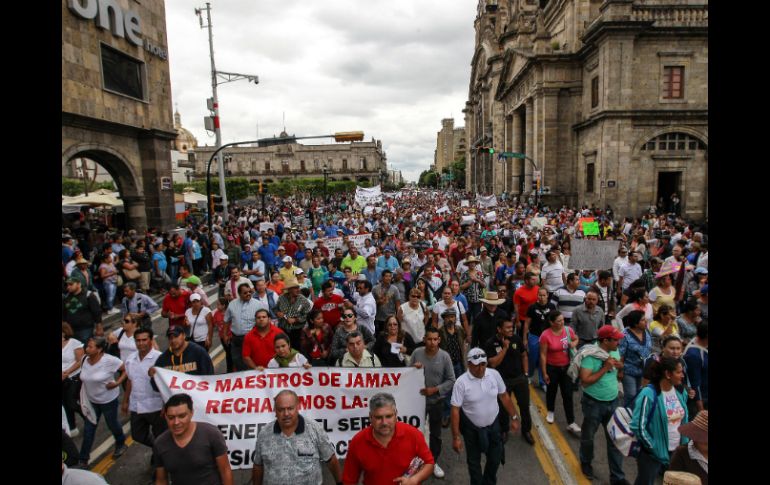 México | Lea las noticias más importantes del día Barra informativa Resumen informativo del miércoles 04 de septiembre de 2013 Por: EL INFORMADOR 4 de septiembre de 2013 - 21:54 hs Marcha de profesores causa graves afectaciones viales en el Centro de Guadalajara. / Jalisco: Marcha de profesores causa graves afectaciones viales. Fuertes afectaciones a la circulación genera en el centro de Guadalajara la manifestación de maestros opositores a la Reforma Educativa. Revisan a 83 funcionarios que tienen plazas en la SEJ. Francisco Ayón explica que hay regidores que tienen dos, cuatro, seis o diez horas. Hay 180 policías tapatíos con tareas de escoltas. Regidora del PAN confirma que además la policía tapatía resguarda al rector de la UdeG. México: La CNTE y la Segob se reunirán nuevamente mañana. Exigen que no se publique la reforma a la Ley del Servicio Nacional Docente. Peña Nieto se reúne con Xi Jinping en Rusia. Acuerdan seguir impulsando mayores oportunidades de acceso a productos mexicanos a China. El IFE aprueba la destrucción de material electoral de 2006. La destrucción deberá llevarse a cabo antes de la primera semana de octubre. Internacional: Comité de Senado de EU aprueba ataque militar a Siria. El ataque sería por un plazo máximo de 60 días y sin tropas sobre el terreno. Arrestan a líder de ''Legionarios'' por caso de abuso sexual en Chile. John O'Reilly fue detenido y estará bajo arresto domiciliario, además tendrá prohíbido salir del país, así lo determinó un tribunal chileno. Gran Canal de Venecia podría cambiar tras accidente de góndola. Las góndolas podrían dejar de circular por el conocido canal de ''La Serenísima''. Economía: Aplazan fecha de fallo de licitación para segundo ''apagón''. La Cofetel pasa del 11 de septiembre al 30 de octubre la emisión del fallo para el servicio de entrega de decodificadores y antenas digitales. Toyota llama a revisión 370 mil autos en el mundo. Reemplazará gratuitamente las partes que ocasionan diversos problemas en los automóviles. Deportes: La afición duda del arrepentimiento de Vergara. Luego del mensaje que dio esta tarde la afición le da con todo al dueño del Rebaño. Mayweather Jr. asegura bolsa millonaria. El pugilista se lleva más de 41 millones sin importar el resultado ante 'Canelo'. Temas Barra informativa Lee También "Priscilla" provoca oleaje alto en Barra de Navidad (VIDEO) Salinas Pliego estrenará serie: "La revolución de la libertad" Inician obras de conservación en la carretera federal 80 Aseguran armamento en Mazamitla y Barra de Navidad Recibe las últimas noticias en tu e-mail Todo lo que necesitas saber para comenzar tu día Registrarse implica aceptar los Términos y Condiciones