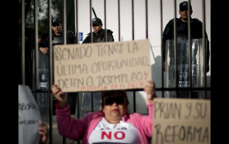 México | Sólo se puede acceder al inmueble con previa identificación ''Blindan'' Senado ante protestas por reforma laboral Desde antes de las 06:00 horas, la sede de la Cámara Alta ya está resguardada por elementos de Seguridad del Distrito Federal Por: SUN 2 de octubre de 2012 - 08:21 hs Policías federales resguardan la sede del Senado, durante las manifestaciones contra la reforma laboral. XINHUA / CIUDAD DE MÉXICO (02/OCT/2012).- Ante la amenaza de distintas organizaciones sociales de bloquear los accesos del Senado de la República, por la discusión de la reforma laboral, el inmueble de este órgano Legislativo se encuentra resguardado por elementos de la Secretaría de Seguridad Pública del Distrito Federal (SSPDF). El ex diputado federal del Partido del Trabajo (PT), Gerardo Fernández Noroña, quien ha sido uno de los principales convocantes a manifestaciones y plantones en contra de la reforma laboral, advirtió desde el fin de semana pasado que llegaría a bloquear el Senado este martes a partir de las 08:00 horas, acompañado por distintas organizaciones. Desde antes de las 06:00 horas, la sede de la Cámara Alta ya está resguardada por elementos de Seguridad del Distrito Federal, quienes comenzaron a formar vallas alrededor del inmueble. El grueso de las vallas se colocaron sobre las calles de Madrid y París, que son los accesos al estacionamiento. Sólo se puede acceder al inmueble con previa identificación. Este martes la Mesa Directiva del Senado informará al pleno que recibió de la Cámara de Diputados la minuta que reforma distintos aspectos de la Ley Federal del Trabajo, ello como parte de la iniciativa preferente que el Ejecutivo envió al Congreso el pasado 1 de septiembre. Se contempla que la minuta se turne a la Comisión del Trabajo para que comience con su análisis. Temas Senado Poder Legislativo Reforma Laboral Recibe las últimas noticias en tu e-mail Todo lo que necesitas saber para comenzar tu día Registrarse implica aceptar los Términos y Condiciones