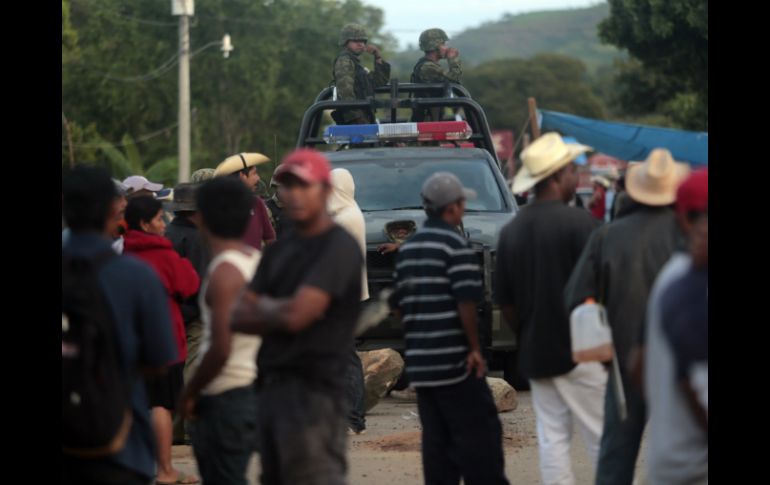 México | Policías comunitarios acusan que han sido hostigados por el Ejército Bloquean la Ayutla-Tierra Colorada; retienen a soldados Policías comunitarios acusan que han sido hostigados por el Ejército con el decomiso de armas Por: SUN 6 de agosto de 2013 - 15:32 hs Integrantes de autodefensa piden un diálogo mientras que el Ejército sólo pide que les permitan pasar por la carretera. AFP / AYUTLA, GUERRERO (06/AGO/2013).- Policías Comunitarios adheridos a la CRAC bloquearon la carretera estatal Ayutla-Tierra Colorada en solidaridad con la UPOEG, debido a que acusan que han sido hostigados por el Ejército y les han decomisado armas. Durante el bloqueo permanente que inició alrededor del mediodía, elementos del Ejército a bordo de dos camiones y una unidad blindada fueron retenidos luego de que habían sido liberados en la comunidad del Pericón, en el municipio de Tecoanapa, por los pobladores e integrantes del sistema de seguridad y justicia. El comandante Garza fue liberado ayer por elementos del Ejército, mientras que las armas siguen en poder de los militares. Los elementos de la CRAC, quienes se encontraban armados, no permitieron el acceso a los elementos del Ejército al mando del Mayor Auricio González, quien a través de la bocina integrada en la unidad blindada les pedía que les dieran el acceso. "Señores de la policía comunitaria les pido por favor respeto que nos permitan pasar, ustedes son gente humilde, no venimos a buscar confrontación, les pedimos que nos permitan pasar, no permitan que sus líderes los arrastren a un enfrentamiento". Los elementos de la CRAC les pidieron que se bajaran a dialogar pero el comandante solo pedía que les permitieran pasar. Temas Ejército Estados Guerrero Manifestaciones en México Autodefensa Lee También Un país donde la salud mental no existe en el presupuesto El precio de la paz en Gaza Lluvias dejan 29 muertos en un día en México Clima en Ciudad de México hoy: el pronóstico para el sábado 11 de octubre de 2025 Recibe las últimas noticias en tu e-mail Todo lo que necesitas saber para comenzar tu día Registrarse implica aceptar los Términos y Condiciones