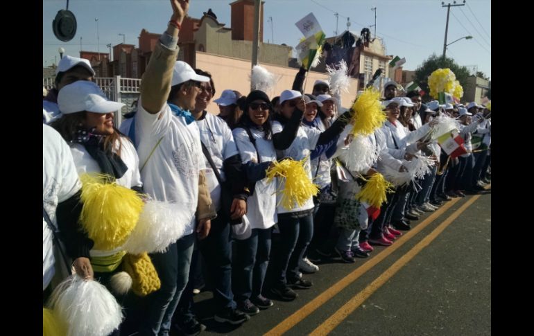 México | Autoridades del Edomex estiman que asistirán 300 mil personas de todo el país Calculan 250 mil fieles en predio donde el Papa oficiará misa Autoridades del Edomex estiman que asistirán 300 mil personas provenientes de distintas partes del país Por: SUN 14 de febrero de 2016 - 08:53 hs ECATEPEC, ESTADO DE MÉXICO (14/FEB/2016).- Hasta después de las 8:00 horas habían ingresado al predio El Caracol, donde a las 11:30 horas el Papa Francisco ofrecerá una misa, más de 250 mil personas, informó el Secretario General de Gobierno, José Sergio Manzur Quiroga. Según el funcionario desde las primeras horas del sábado cuando empezó a llegar la gente y hasta las 8:00 horas de este domingo, no se ha presentado incidente alguno en las inmediaciones del terreno de 45 hectáreas, donde se celebrará la misa a la que se estima asistirán 300 mil personas provenientes de distintas partes del país. Lo que prevalece, dijo el Secretario General de Gobierno es un ambiente festivo y optimismo de la gente que quiere estar cerca del jefe de la Iglesia Católica. En el interior del predio, amenizan grupos musicales con canciones católicas el momento, para que las personas que ya están reunidas participen con porras y alegorías a favor del Papa. Algunos de los invitados VIP que ingresan por uno de los accesos se les ofrece café, fruta y un kit que contiene una bolsa en agua, jugo y una galleta energética. Temas Iglesia Católica Estado de México Papa Francisco El Papa Francisco en México Lee También Metro CDMX: Fecha en que abrirán todas las estaciones de la Línea 1 Esta es la verdadera identidad del "Juan Gabriel" captado en París t.A.T.u anuncia concierto en México: precio de boletos y cuándo salen a la venta ¿Será obligatorio presentar la CURP biométrica para trámites escolares? Recibe las últimas noticias en tu e-mail Todo lo que necesitas saber para comenzar tu día Registrarse implica aceptar los Términos y Condiciones