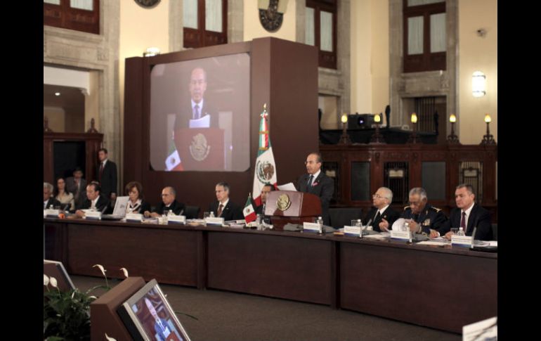 México | Gobernadores del país tienen un plazo de cuatro semanas para que pasen su propuesta Calderón pide plan alterno para policía confiable Tras un debate de casi una hora, Calderón planteó a los gobernadores una salida, que además adelanta a diciembre la sesión 32 del Consejo Nacional de Seguridad Pública Por: SUN 31 de octubre de 2011 - 15:18 hs CIUDAD DE MÉXICO (31/OCT/2011).- A propuesta del Presidente Felipe Calderón, los gobernadores tienen un plazo de cuatro semanas para presentar un plan que implica contar con policías confiables, en mandos medios y altos, ante el rechazo de mandatarios priistas y del gobernante del Distrito Federal de acordar que en mayo de 2012 hayan concluido ese proceso. Tras un debate de casi una hora, Calderón planteó a los gobernadores una salida, que además adelanta a diciembre la sesión 32 del Consejo Nacional de Seguridad Pública. Por ello sugirió un periodo de cuatro semanas para que cada entidad presente su plan y el secretariado del Consejo haga lo propio en la próxima sesión. Temas Felipe Calderón PGR Crimen Organizado SSP Policía Federal Lee También Árbol cae sobre coche y camión de transporte público en Guadalajara Detienen en Tabasco a menor vinculado con grupo delictivo Detienen a cuatro jóvenes armados con fusiles automáticos en Sinaloa Diputada propone Home Office por lluvias en la CDMX Recibe las últimas noticias en tu e-mail Todo lo que necesitas saber para comenzar tu día Registrarse implica aceptar los Términos y Condiciones