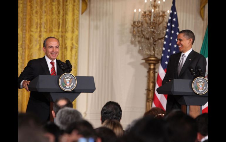 México | El Presidente se reunirá con empresarios y recibirá un premio Calderón va a EU a estrechar relaciones El Presidente se reunirá con empresarios y recibirá un premio, aunque no se entrevistará con su homólogo Barack Obama Por: EL INFORMADOR 9 de mayo de 2011 - 02:38 hs Felipe Calderón y Barack Obama bromean durante la rueda de prensa conjunta celebrada el pasado 3 de marzo en Washington. ESPECIAL / WASHINGTON, ESTADOS UNIDOS (09/MAY/2011).- El Mandatario Felipe Calderón inicia hoy una gira de tres días por Estados Unidos en la que abordará diversos temas como la defensa de los inmigrantes, el comercio bilateral, las bondades de invertir en el país y el cambio climático. El Presidente estará en Nueva York y Washington, a donde acudirá por tercera ocasión en lo que va de la administración de Barack Obama, aunque en esta ocasión no se reunirá con su par estadounidense. La visita tiene el objetivo de consolidar los contactos con interlocutores que desempeñan un papel destacado en el diálogo con México, y entre ellos funcionarios, legisladores, líderes empresariales y financieros. El miércoles Calderón recibirá un premio de parte del Instituto de Liderazgo Hispano del Congreso (CHLI, en inglés). El galardón ha sido entregado a distintas personalidades, como el presidente de Taiwán, Ma Ying-jeou, y el ex presidente del Gobierno español, José María Aznar. La primera visita oficial que realizó el Ejecutivo Mexicano a Washington fue el 19 y 20 de mayo del año pasado. El Presidente Barack Obama lo recibió en el jardín principal de la Casa Blanca donde ofrecieron un discurso. Calderón rechazó el trato que Arizona da a los inmigrantes “a pesar de su enorme contribución a la economía y a la sociedad de Estados Unidos”. El presidente estadounidense, Barack Obama, coincidió en que la SB 1070 aprobada en abril de ese año “tiene el potencial de ser aplicada de forma discriminatoria”. El día 20 Calderón ofreció un discurso en el Congreso estadounidense y les pidió hacer un esfuerzo mayor para contener el flujo de armas hacia México. “Si ustedes no regulan la venta de armas de manera correcta nada garantiza que los criminales no tengan acceso a éstas, hay más de siete mil tiendas de armas en la frontera con México donde cualquier puede comprar”. Calderón también criticó la “ley Arizona” que criminaliza a los indocumentados y recibió las palmas de la mayoría del Congreso. Otros, como el republicano John McCain, consideraron que el Ejecutivo Mexicano se excedió por su enérgica condena y dijo que es “desafortunado y decepcionante que Calderón optara por criticar al Estado de Arizona e inmiscuirse en un asunto de política interna de Estados Unidos”. En su segunda visita oficial a la capital de la Unión Americana que se llevó a cabo los días 2 y 3 de marzo pasados, Calderón y Obama anunciaron medidas para terminar con la disputa del transporte de carga. “México suspenderá en fases las represalias impuestas en materia de aranceles tras el incumplimiento de Estados Unidos del Tratado de Libre Comercio de América del Norte (TLCAN) y las dará por terminadas conforme avance la liberalización del transporte de carga”. La reunión estuvo enmarcada por el asesinato del agente de la Oficina de Inmigración y Aduanas (ICE, en inglés), Jaime Zapata, quien fue ultimado en San Luis Potosí por miembros de “Los Zetas”. Obama aprovechó el encuentro para pedir la extradición de los culpables y reiteró la cooperación de su país en el combate al crimen organizado. Calderón concedió una entrevista a The Washington Post en la que manifestó que cada vez era más difícil trabajar con el embajador de Estados Unidos en México, Carlos Pascual, y afirmó que se lo haría saber al presidente Obama. La molestia surgió a raíz de los cables que filtró WikiLeaks en los que el embajador Pascual criticaba la capacidad de las Fuerzas Armadas en la lucha contra el narcotráfico y aseguraba que entre las dependencias mexicanas había descoordinación y envidias. Molesto, Calderón le dijo al diario: “Es difícil cuando ves el coraje del Ejército y de pronto alguien en la embajada americana dice que no son lo suficientemente valientes”. Dos semanas después, la secretaría de Estado norteamericana, Hillary Clinton, anunció que Pascual había renunciado a su cargo. AgendaHoy En Nueva York, el Presidente Felipe Calderón sostendrá un encuentro con varias firmas internacionales para hablar de las bondades de México como socio comercial. Mañana El ejecutivo Mexicano se reunirá con el alcalde de Nueva York, Michael Bloomberg. Miércoles El Presidente se entrevistará en Washington con el líder del Senado estadounidense, el demócrata Harry Reid, y con otros legisladores estadounidenses que presiden comisiones vinculadas a la relación bilateral con México. El Instituto de Liderazgo Hispano del Congreso (CHLI, en inglés) le entregará a Calderón el Premio al Liderazgo en Asuntos Internacionales. Iniciativa MéridaAlistan asesoramiento en aviación El Gobierno de Estados Unidos prepara la llegada a territorio mexicano de un alto mando de aviación, posiblemente militar, quien habrá de participar como parte de la Iniciativa Mérida en cada una de las facetas de la operación aérea antinarcóticos de la Secretaría de Seguridad Pública (SSP) y de la Procuraduría General de la República (PGR). El funcionario, cuya designación está en curso de concretarse, trabajará en México bajo la dirección de la Sección de Asuntos de Narcóticos de la embajada de Estados Unidos (NAS, en inglés) y encabezará los trabajos de ampliación del programa aéreo de la Iniciativa Mérida contra el narcotráfico, “que se prevé aumente en tamaño y alcances”. El documento de la convocatoria emitida por el Departamento de Estado señala que el futuro Senior Aviation Advisor (SAA) se encargará de la “planificación de la aviación es