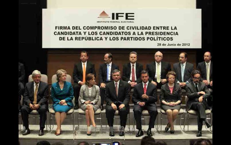 México | Se añade el compromiso de los cuatro aspirantes con el resultado en las urnas Candidatos firman pacto de civilidad electoral En el documento se les hace un llamado a que el 1 de julio hagan la labor que les corresponde, para que se desarrollen los comicios en un ambiente de civilidad y tranquilidad Por: NTX 28 de junio de 2012 - 18:04 hs CIUDAD DE MÉXICO (28/JUN/2012).- Los cuatro candidatos presidenciales firmaron este jueves el Compromiso de Civilidad Electoral, con el cual garantizan el respeto a la labor del Instituto Federal Electoral (IFE) y del TEPJF ''sea cual fuere'' el resultado en las urnas. En vísperas de las elecciones presidenciales del 1 de julio y convocado por el IFE, los candidatos Josefina Vázquez Mota, Enrique Peña Nieto, Andrés Manuel López Obrador y Gabriel Quadri de la Torre, firmaron el documento ante la presencia de organizaciones sociales y empresariales. ''Sea cual fuere el resultado, expresamos por este medio nuestro firme compromiso de respeto a la legalidad'', destaca el documento firmado por los aspirantes presidenciales durante una ceremonia en la que estuvieron presentes los dirigentes de los partidos políticos. El documento, que fue leído por el consejero presidente, Leonardo Valdés Zurita, señala que los ''firmantes hemos realizado nuestro mejor esfuerzo para presentar a la ciudadanía las razones y propuestas para acceder al puesto más alto al que puede aspirar un mexicano: la Presidencia de la República''. Asimismo se añade el compromiso de los cuatro aspirantes con el resultado en las urnas, el cual ''se sustenta en un absoluto respeto y reconocimiento de las leyes e Instituciones electorales vigentes en nuestro país''. También se incluye reconocer que los partidos políticos han participado en la construcción de los instrumentos electorales, en todas las etapas y decisiones del proceso electoral, y que cuentan con los mecanismos para vigilar el desarrollo de la votación, las actividades y las decisiones que han conformado al proceso electoral. ''Asimismo, reconocemos la generosidad y la entrega cívica de los ciudadanos que fungirán como funcionarios de casillas, y confiamos en que su participación como autoridad electoral es una garantía más de la limpieza y legalidad del proceso electoral''. Por ello, ''reiteramos nuestra disposición a respetar las decisiones que emitan el Instituto Federal Electoral y el Tribunal Electoral del Poder Judicial de la Federación (TEPJF), autoridades en las que está depositada la confianza para organizar, vigilar y decidir sobre los asuntos que han construido esta elección''. En el documento se hace un llamado a los candidatos, a sus representantes, a los dirigentes de los siete partidos políticos y sus correligionarios a que el 1 de julio hagan la labor que les corresponde, para que se desarrollen los comicios en un ambiente de civilidad y tranquilidad. ''En este sentido, expresamos nuestro más enérgico rechazo al uso de recursos públicos y programas sociales para coaccionar el voto, o a cualquier otra práctica que intente vulnerar el derecho de los mexicanos a votar de manera libre y en paz'', añade el documento. ''De la misma forma, manifestamos nuestro repudio a todo acto de violencia que inhiba la participación ciudadana el 1 de julio: la sustitución pacífica de los poderes Ejecutivo y Legislativo por la vía de las urnas es una exigencia de todos los mexicanos''. Finalmente, hacemos un llamado a la ciudadanía para que acudan a votar este domingo. Cada voto cuenta y es la voluntad de los mexicanos la que decidirá el rumbo y el futuro de nuestro país. Temas Enrique Peña Nieto AMLO Josefina Vázquez Mota Elecciones México 2012 Gabriel Quadri Lee También Metro CDMX: Fecha en que abrirán todas las estaciones de la Línea 1 Esta es la verdadera identidad del "Juan Gabriel" captado en París t.A.T.u anuncia concierto en México: precio de boletos y cuándo salen a la venta ¿Será obligatorio presentar la CURP biométrica para trámites escolares? Recibe las últimas noticias en tu e-mail Todo lo que necesitas saber para comenzar tu día Registrarse implica aceptar los Términos y Condiciones