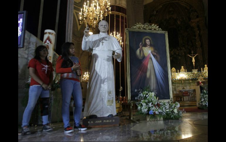 México | El hecho de que Juan Pablo II y Juan XXIII es calificado de extraordinario Celebran canonización en la Basílica de Guadalupe El hecho de que Juan Pablo II y Juan XXIII es extraordinario, calificó Christophe Pierre, nuncio apostólico en México Por: SUN 27 de abril de 2014 - 12:27 hs Los católicos mexicanos estuvieron en oración por varias horas. SUN / CIUDAD DE MÉXICO (27/ABR/2014).- Como un "acontecimiento extraordinario" calificó el nuncio apostólico en México Christophe Pierre, la canonización de los papas Juan Pablo II y Juan XXIII. Después de develar una placa en homenaje a las canonización del papa Juan Pablo II, al pie de la estatua ubicada en un costado de la plaza de la Basílica de Guadalupe, el nuncio "Representante del Vaticano en México", dijo "que hay que dar gracias a Dios por esto". Luego en una procesión, encabezada por una reliquia y una réplica en cera del papa Juan Pablo inició una misa de acción de gracias a la que asistieron centenas de mexicanos. Al inicio los fieles católicos ondearon banderitas con los colores y símbolos del Vaticano que muestran en una fotografía, los rostros de ambos papas bajo la mirada de la virgen de Guadalupe. La misa dominical que se celebra en el altar mayor está presidida además del nuncio Pierre por el Presidente del episcopado mexicano, el cardenal Francisco Robles y por Enrique Glennie, episcopal y rector de la Basílica. Temas Religión Estados Iglesia Católica Ciudad de México Juan Pablo II Basílica de Guadalupe Lee También La distopía de Clara Brugada Harfuch y los medios El efecto Donald Trump Gobierno federal refuerza combate a extorsión y desapariciones Recibe las últimas noticias en tu e-mail Todo lo que necesitas saber para comenzar tu día Registrarse implica aceptar los Términos y Condiciones