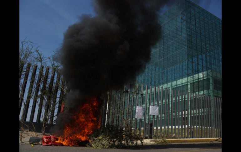 OAXACA, OAXACA (26/MAY/2017).- Pobladores de San Raymundo Jalpan cercaron con ramas y quema de llantas la sede del Congreso de Oaxaca, para exigir solución al conflicto postelectoral en dicho municipio, pero también para reclamar el predio donde se instaló el recinto legislativo, así como la Universidad Anáhuac de la entidad.Después de las 10:00 horas, unas 200 personas exigieron a gritos la presencia de los diputados y demandaron respuesta al oficio que les entregaron el pasado 10 de abril, donde les piden comprueben con documentos notariales que el Poder Legislativo es propietario del terreno donde se e encuentran sus instalaciones, inauguradas en el último año del sexenio de Ulises Ruiz Ortiz.De la misma manera, los invitaron a que acudan a la localidad a dialogar con ambas partes pues desde inicios del año se mantiene un conflicto por la disputa de la presidencia municipal, al desconocer el Tribunal Electoral del Estado de Oaxaca al primer edil designado, Olegario Luis Benítez, y tras otra elección, fue nombrado Mariano Martínez Mendoza.Tras no ser escuchados por ninguna autoridad, decidieron retirarse de la sede del Legislativo e instalar por una hora un bloqueo a la carretera que conduce a la Villa de Zaachila, en el entronque con la vía al Centro de Rehabilitación Infantil Teletón, tras lo cual se retiraron.Los inconformes son asesorados en ambas demandas por integrantes de la organización Comuna Oaxaca, que lidera Flavio Sosa Villavicencio.