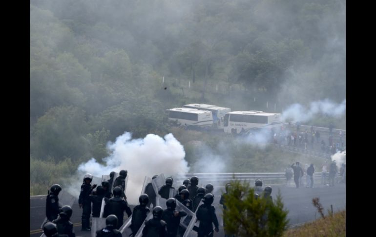 México | El encuentro dejó nueve heridos y un camión quemado en la capital guerrerense Chilpancingo vive enfrentamiento entre normalistas y policías El encuentro dejó nueve heridos y un camión quemado en la capital guerrerense Por: EFE 22 de septiembre de 2015 - 11:36 hs CHILPANCINGO, GUERRERO (22/SEP/2015).- Un enfrentamiento entre estudiantes de la Escuela Normal Rural de Ayotzinapa y policías de Guerrero dejó nueve heridos y un camión quemado cerca de Chilpancingo. El choque comenzó este martes sobre las 07:40 horas cuando un grupo de estudiantes y padres de los 43 estudiantes desaparecidos en septiembre de 2014 se dirigían de Tixtla, hacia Chilpancingo para realizar una protesta. Los policías estatales instalaron un punto de revisión en el libramiento Chilpancingo-Tixtla, pero los jóvenes impidieron que estos accedieran al interior de la decena de autobuses en los que viajaban. Cuando los estudiantes decidieron regresar a la escuela, comenzó un enfrentamiento con grupos antimotines instalados en otro punto de la carretera. Los jóvenes lanzaron piedras y cócteles molotov y las fuerzas de seguridad respondieron con gases lacrimógenos. Durante el incidente, que se prolongó durante una hora y en el que los estudiantes eran mayoría, resultaron heridos seis miembros de la Policía de Guerrero y al menos tres normalistas. Además, los estudiantes quemaron un camión que traían con ellos, colocándolo en medio de un túnel a fin de impedir la llegada de refuerzos antimotines. A su vez, retuvieron a cinco agentes estatales, entre ellos dos mujeres, que fueron liberados a las 10:30 horas en las oficinas de Seguridad Pública de Tixtla. Familiares y compañeros de los 43 estudiantes desaparecidos hace casi un año en Iguala atacaron ayer también las instalaciones de la fiscalía de Guerrero para protestar por la deficiente respuesta de las autoridades en torno al caso. Los manifestantes pegaron en la facha de sede las fotografías de los 43 jóvenes que desaparecieron a manos de policías y miembros del cártel Guerreros Unidos, quienes los asesinaron y quemaron en un basurero, según la versión de la Procuraduría General de la República. Dicha versión fue cuestionada a principios de este mes por expertos de la Comisión Interamericana de Derechos Humanos (CIDH) que concluyeron que no hay evidencias para asegurar que los jóvenes fueron quemados en el basurero de Cocula. Este sábado se cumple un año del trágico suceso, y padres y normalistas ya han anunciado que llevarán a cabo protestas y movilizaciones hasta el domingo 27 de este mes. Temas Estados Guerrero Agresiones a policías Estudiantes Manifestaciones en México Caso Ayotzinapa Lee También México se prepara para recibir un nuevo frente frío este sábado "Raymond" se encamina a tierra; aquí su trayectoria de hoy Un país donde la salud mental no existe en el presupuesto El precio de la paz en Gaza Recibe las últimas noticias en tu e-mail Todo lo que necesitas saber para comenzar tu día Registrarse implica aceptar los Términos y Condiciones