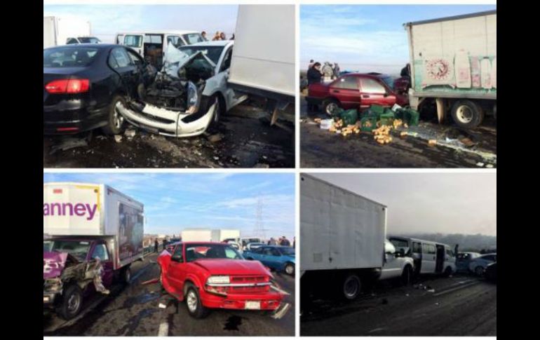 México | El accidente tiene lugar la mañana de este lunes y participaron 30 vehículos Choque múltiple deja 20 heridos en Aguascalientes El accidente tiene lugar la mañana de este lunes y participaron 30 vehículos Por: SUN 28 de diciembre de 2015 - 10:38 hs AGUASCALIENTES, AGUASCALIENTES (28/DIC/2015).- Esta mañana de lunes, un choque múltiple por alcance entre más de 30 vehículos en la Carretera Federal 70 Oriente tramo Aguascalientes-San Luis Potosí, dejó como saldo 20 lesionados.La carambola se registró a las 8:10 horas a causa de la escasa visibilidad por la densa neblina en el kilómetro 8 de la mencionada vía, a la altura de la comunidad Norias de Paso Hondo, perteneciente a este municipio.Los lesionados fueron trasladados a unidades del Instituto Mexicano del Seguro Social (IMSS) y al Hospital Tercer Milenio de Aguascalientes en diez ambulancias del Instituto de Salud del Estado de Aguascalientes (ISEA) y de la Cruz Roja.Algunos conductores involucrados mencionaron que a la hora del accidente no se veía nada, comentaron elementos de Seguridad.En el choque en cadena no se reportó ningún muerto y los lesionados presentaban traumatismos diversos.La carretera fue cerrada totalmente por agentes de la Policía Estatal tanto en su carril de poniente a oriente donde ocurrió la carambola y al lugar acudió media docena de patrullas de la Policía Federal, así como elementos del Ejército.En el accidente se vieron involucrados distintos tipos de unidades automotrices, la mayoría autos compactos, así como una unidad de la Pasteurizadora Sello Rojo, cuya carga quedó esparcida sobre la carretera, y un camión de la empresa Vianey.En el rescate y traslado de los lesionados participaron ambulancias de los municipios El Llano, San Francisco de Romo, Villa Juárez, Jesús María y de esta capital. Temas Estados Carreteras Accidentes México Cruz Roja Aguascalientes Lee También Clima en Ciudad de México hoy: el pronóstico para el jueves 16 de octubre de 2025 Detienen a segundo implicado en asesinato del abogado David Cohen México y Estados Unidos refuerzan cooperación en seguridad fronteriza Lemus respalda a productores de maíz y reconoce su reclamo 'por un precio justo' Recibe las últimas noticias en tu e-mail Todo lo que necesitas saber para comenzar tu día Registrarse implica aceptar los Términos y Condiciones