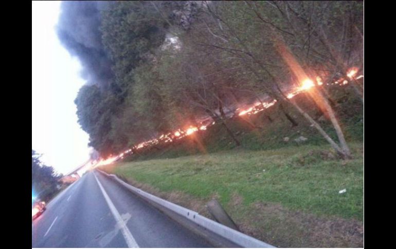 México | La circulación se regulariza en la carretera federal México-Tuxpan Completamente sofocado, fuego en oleoducto en Puebla La circulación se regulariza en la carretera federal México-Tuxpan Por: EL INFORMADOR 20 de marzo de 2015 - 10:32 hs La circulación de la carretera federal México-Tuxpan se vio afectada por el incendio de este lugar. TWITTER / @danoga GUADALAJARA, JALISCO (20/MAR/2015).- A través de la cuenta de Twitter de la Policía Federal, se informó que fue totalmente sofocado el fuego en el kilómetro 125 de la autopista 132 de México a Tuxpan debido al incendio de un oleoducto. Detallan que en el lugar se tuvo el apoyo de personal técnico y de seguridad de Petróleos Mexicanos (Pemex), así como bomberos y elementos de Protección Civil de Puebla. Pemex informó momentos antes por la misma red social que el fuego estaba controlado y sospechaban de que se trataba de una toma clandestina. Ante el incidente, la circulación de la carretera fue totalmente cerrada esperando que se pudiera sofocar el fuego. Una vez hecho esto, la Secretaría General de Puebla informó que se abrió la circulación normalmente en la carretera federal México Tuxpan. EL INFORMADOR / CAROLINA QUINTANILLA Temas Incendios Gasolinas Puebla Carreteras Policía Federal Lee También Anuncian conectividad gratis en Veracruz y Puebla tras inundaciones Reportan carambola en autopista a Morelia Revelan el número de personas no localizadas tras lluvias "atípicas" Bomberos de Guadalajara controlan incendio en Jardines del Sur (VIDEO) Recibe las últimas noticias en tu e-mail Todo lo que necesitas saber para comenzar tu día Registrarse implica aceptar los Términos y Condiciones
