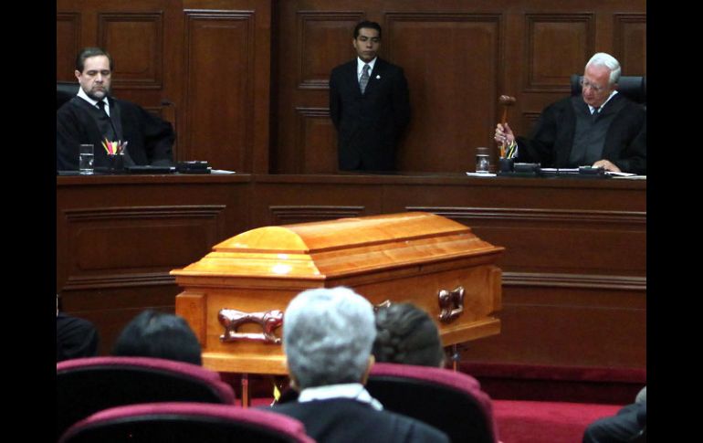 México | Los legisladores y familiares realizaron guardias de honor al cuerpo presente Congreso rinde homenaje a Juventino Castro Telma Guajardo Villarreal, presidenta de la Jucopo, fue la oradora y destacó que la vida de Juventino Castro y Castro, fue ejemplar y fecunda Por: NTX 9 de abril de 2012 - 16:25 hs En el vestíbulo del Palacio Legislativo de San Lázaro, se colocó el féretro. EL UNIVERSAL / CIUDAD DE MÉXICO (09/ABR/2012).- La LXI Legislatura del Congreso de la Unión rindió un homenaje de cuerpo presente a Juventino Castro y Castro, diputado federal y ex ministro de la Suprema Corte de Justicia de la Nación (SCJN), quien falleció la madrugada del domingo en esta capital. En el vestíbulo del Palacio Legislativo de San Lázaro, se colocó el féretro de este distinguido mexicano que dedicó su vida al servicio público, a impartir justicia y legislar. Los legisladores y familiares realizaron guardias de honor al cuerpo presente de quien fuera diputado del Partido de la Revolución Democrática (PRD), el cual llegó a San Lázaro a la 13:25 horas, acompañado de su hija María Luisa Castro Sariñana y de su hermano Fernando Castro y Castro. En un hecho sin precedentes en la historia reciente de San Lázaro, se rindió este homenaje a Castro y Castro, de cuerpo presente, al poner sus restos a la entrada del salón de plenos de la Cámara de Diputados, donde se colocaron también seis banderas franqueando el féretro y un gran crespón (moño) negro arriba de la puerta de cristal. El evento inició pasada las 14:00 horas, después de que se llevó a cabo la reunión de la Junta de Coordinación Política (Jucopo), donde se acordaron los temas que los legisladores abordarán en las próximas sesiones. De esta manera, a las 14:04 horas, la presidenta de la Jucopo, la perredista Mary Telma Guajardo Villarreal, comenzó la ceremonia luctuosa, con la presencia de diputados federales, amigos y familiares del finado. Distinguió la presencia de las hijas del ex ministro, María Elena, María Cristina y María Luisa, así como de sus nietos Rodrigo y Mónica Llanes Castro y de su hermano Fernando Castro y Castro. Además de los coordinadores parlamentarios Francisco Rojas, del PRI; Francisco Ramírez Acuña, del PAN; Juan José Guerra Abud, del PVEM, y Guajardo Villarreal del PRD, Así como los legisladores, sobre todo del PRD y PT, Alejandro Encinas, Laura Itzel Castillo y Jaime Cárdenas, respectivamente. La única oradora fue la presidenta de la Jucopo, Telma Guajardo Villarreal, quien destacó que la vida de Juventino Castro y Castro, fue ejemplar y fecunda, y que para el grupo parlamentario del PRD, fue un honor tenerlo como diputado en esta LXI Legislatura. También resaltó que "Don Juventino siempre se apegó a la ley y a la justicia. No nos equivocamos, concluyó su vida como un gran legislador". Indicó que en la presidencia de la Comisión de Puntos Constitucionales, Castro y Castro tuvo el acierto de buscar siempre los consensos que le permitieran a la Cámara de Diputados, contribuir a la modernización de nuestra Constitución Política. "En la LXI Legislatura se le recordará por haber incorporado a nuestro Código Político, el reconocimiento y protección de los derechos humanos, mejoras sustantivas en el juicio de amparo y figuras como las acciones colectivas que otorgan mayores derechos a los gobernados". "Se le recordará también, por haber incrementado esos derechos humanos y garantías constitucionales con nuevos conceptos como el interés superior de la niñez, el acceso a una alimentación nutritiva, suficiente y de calidad, y por la obligatoriedad de la educación media superior para todos los ciudadanos sin distinción", puntualizó. Agregó que el ex ministro de la SCJN dejó su huella por esforzarse por mejorar la calidad de nuestra democracia al plasmar en la Carta Magna mecanismos de democracia participativa, como la consulta popular, la iniciativa ciudadana y las candidaturas independientes. "Quiero reconocer también la solidaridad, el respaldo, el reconocimiento que dan todos y cada uno de los grupos parlamentarios expresados aquí con sus coordinadores presentes en la Junta de Coordinación Política de la Cámara de Diputados, a este reconocimiento a un gran hombre, que hoy nos deja un legado que habremos de honrar. Descanse en paz don Juventino Castro y Castro", concluyó. Después del mensaje se dieron 15 minutos para que los diputados realizaran guardias de honor al cuerpo presente del diputado y ex ministro Castro y Castro. Al concluir la ceremonia el cuerpo fue retirado del Palacio Legislativo de San Lázaro para continuar hacia la cremación que está programada a las 17:00 horas. Temas Congreso Homenaje Estados Decesos de personalidades Lee También Así se prevé que avance el desarrollo de "Sonia" en México ¿Quién era Edgar Molina, diseñador asesinado en Guanajuato? Visa laser: ¿Qué vigencia tiene y cuáles son sus limitaciones? ¿Qué viene en el clima para México en los próximos días? Recibe las últimas noticias en tu e-mail Todo lo que necesitas saber para comenzar tu día Registrarse implica aceptar los Términos y Condiciones