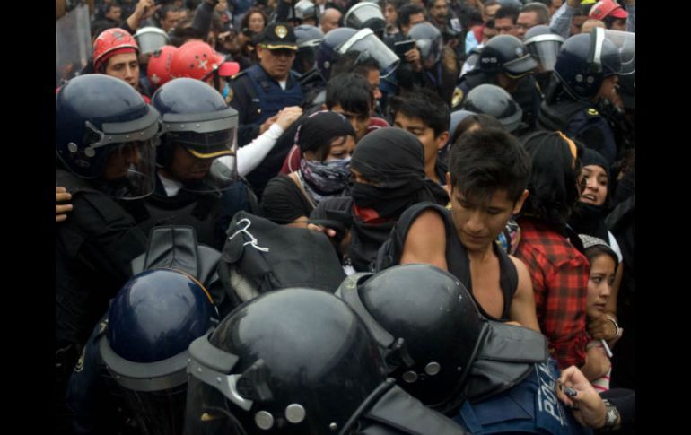 México | Sólo un menor de edad ha sido liberado; a los otros les imputan delito por vandalismo Continúan declarando los 15 detenidos en el Zócalo Sólo un menor de edad ha sido liberado; a los otros les imputan delitos por vandalismo Por: SUN 21 de noviembre de 2014 - 15:49 hs Se espera que más tarde familiares y amigos realicen un mitin para exigir su libertad. EFE / ARCHIVO CIUDAD DE MÉXICO (21/NOV/2014).- Los 15 detenidos la noche del jueves en el Zócalo capitalino, tras los disturbios suscitados y el enfrentamiento con la policía, continúan declarando en la Subprocuraduría Especializada en Investigación de Delincuencia Organizada ( SEIDO). Y es que a los detenidos, entre ellos, tres mujeres y uno de nacionalidad chilena, se les imputan los delitos de delincuencia organizada con fines de terrorismo y vandalismo. De acuerdo con autoridades ministeriales, hay videos en los que se puede apreciar con fidelidad las acciones que cometieron la noche del jueves el grupo que causó destrozos luego que se llevara a cabo una marcha pacífica en apoyo por los 43 normalistas de Ayotzinapa desaparecidos. Afuera de la SEIDO se encuentran amigos y familiares de los detenidos en espera de que pueden tener informes; asimismo, se espera que a las seis de la tarde realicen un mitin afuera del inmueble para exigir su liberación. En el lugar se encuentra el joven Jonathan Pichardo quien busca a su padre que también fue detenido la noche del jueves. "Mi padre es Luis Carlos Pichardo y lo detuvieron pero él no tiene nada que ver con los actos vandálicos, el pasaba y lo agarraron", comenta Jonathan quien asegura que su padre no está involucrado. De acuerdo con autoridades los detenidos por la Secretaría de Seguridad Pública capitalina podrían alcanzar libertad bajo caución ya que los delitos que se les imputa no son graves. La fianza sería de alrededor de 12 mil 500 pesos. Sólo el menor de edad detenido en las inmediaciones del Aeropuerto Internacional de la Ciudad de México fue entregado por el Ministerio Público a sus padres. Temas Estados Distrito Federal Manifestaciones en México Detenidos en México Lee También La aristocracia del Bienestar Gentrificación de la Glorieta de los Desaparecidos Hay mejoría, pero el futuro es “incierto” Buscan entregar apoyos a damnificados por lluvias Recibe las últimas noticias en tu e-mail Todo lo que necesitas saber para comenzar tu día Registrarse implica aceptar los Términos y Condiciones