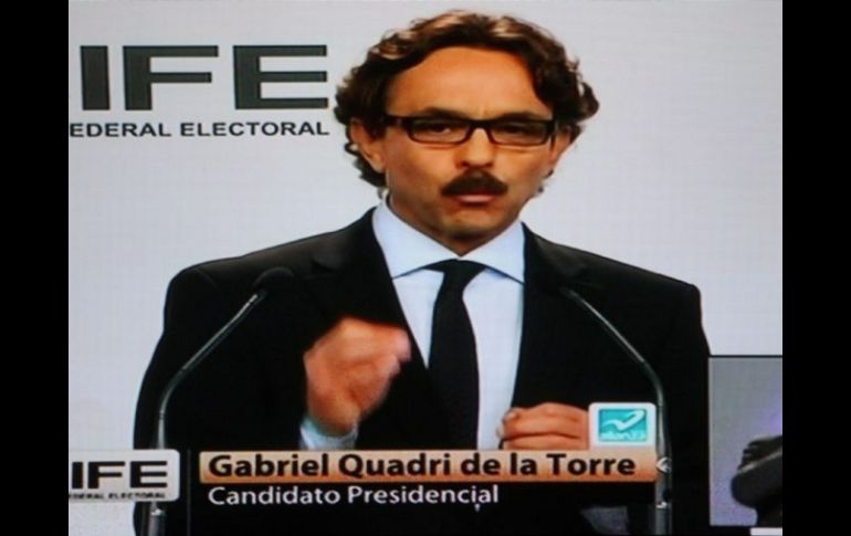 México | En el primer debate entre candidatos presidenciales, organizado por el IFE Convoca Gabriel Quadri a nueva revolución de cambio en México El candidato por Nueva Alianza se autodefine como ciudadano y no como político Por: NTX 6 de mayo de 2012 - 19:34 hs Quadri convocó a los ciudadanos a una nueva revolución de cambio en México por la prosperidad. ARCHIVO / CIUDAD DE MÉXICO (06/MAY/2012).- El candidato a la Presidencia de la República por Nueva Alianza, Gabriel Quadri, convocó a los ciudadanos a una nueva revolución de cambio en México por la prosperidad. En el primer debate entre candidatos presidenciales, organizado por el Instituto Federal Electoral (IFE), dijo que es hora de demostrar que los partidos políticos deben ser un instrumento de los ciudadanos. Quadri de la Torre enfatizó que es un ciudadano y, como tal, llamó a demostrar el rechazo a la clase política, y sostuvo que en este proceso electoral los mexicanos tienen dos opciones: una populista, conservadora y mediocre, y otra liberal representada por él. Temas Partido Nueva Alianza Debates políticos Elecciones México 2012 Gabriel Quadri Lee También Un país donde la salud mental no existe en el presupuesto Clima en Ciudad de México hoy: el pronóstico para el sábado 11 de octubre de 2025 Hoy No Circula Sabatino: Autos que descansan este 11 de octubre en CDMX y Edomex CURP biométrica : ¿Dónde sacar cita para el trámite en CDMX? Recibe las últimas noticias en tu e-mail Todo lo que necesitas saber para comenzar tu día Registrarse implica aceptar los Términos y Condiciones