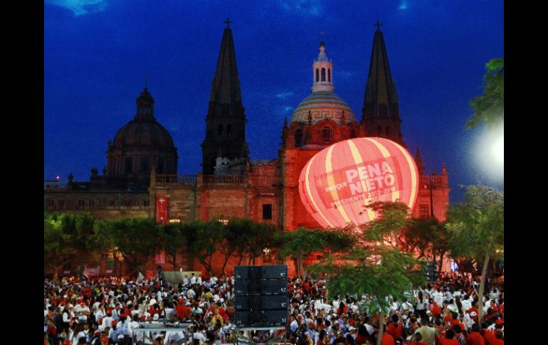 México | En las dos primeras intervenciones del Candidato de las izquierdas se ''fue la señal'' ''Cortan'' audio de López Obrador en celebración priista en Plaza Liberación En las dos primeras intervenciones del Candidato de las izquierdas se ''fue la señal'' Por: EL INFORMADOR 10 de junio de 2012 - 23:45 hs Durante el debate, a espaldas de la catedral tapatía, se infló un globo aerostático con el nombre de Peña Nieto en él. / GUADALAJARA, JALISCO (11/JUN/2012).- Desde antes de las 16:00 horas, la Plaza de la Liberación ya iniciaba a pintarse de colores. Simpatizantes del candidato a la Presidencia de México, por el partido Revolucionario Institucional (PRI) arribaron a la gran plancha de concreto. Algunos de los asistentes fueron vestidos con jeans y camisas blancas de manga larga con logotipos del PRI y con los nombres de varios candidatos. Otros, de rojo, verde y hasta con playeras moradas. Ninguno de azul, amarillo o naranja. La multitud tenía una sola consigna. Coincidían en disfrutar del debate, y ansiaban que iniciara ya la transmisión del debate. De manera puntual, así sucedió. La primera ovación para Peña Nieto ocurrió cuando hizo su aparición en el debate, al momento de ser presentado ante los televidentes. En cuestión de minutos la plaza se llenó. A una hora de haber iniciado la transmisión televisiva, en las dos primeras intervenciones del candidato de las izquierdas, Andrés Manuel López Obrador, se "fue la señal" en la Plaza Liberación. Previamente, en la primera intervención de López Obrador, también le habían cortado algunos fragmentos tanto en audio y video. Personal de logística de Enrique Peña Nieto, encargado del audio y video, a través del audio local se dijeron ajenos a las fallas de la transmisión. En lugares seccionados se encontraban simpatizantes, colaboradores y algunos líderes de Distrito; mientras que en la zona VIP se dejaron ver políticos y ex políticos del PRI. Unos 40 minutos después de terminado el debate, el candidato tricolor arribó al Centro de la Ciudad, donde junto con su esposa, Angélica Rivera, se reunió con poco más de tres mil simpatizantes. Al ascender al podio, Peña Nieto agradeció la presencia de los jóvenes tapatíos. Invitó a "desplegarse en una red de apoyo rumbo al voto". Renombró algunas de sus propuestas ya conocidas, como medicinas gratis, jubilación por ley a personas mayores de 65 años, bajar el costo de la canasta básica, entre otros, y se despidió con un "¡Viva Jalisco, Viva México!" EL INFORMADOR / MARTIN PATIÑO Temas Enrique Peña Nieto PRI AMLO Debates políticos Elecciones México 2012 Recibe las últimas noticias en tu e-mail Todo lo que necesitas saber para comenzar tu día Registrarse implica aceptar los Términos y Condiciones