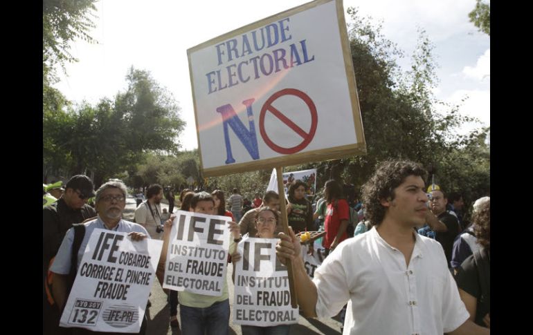 México | Marcharon desde Televisa San Ángel hasta la sede del instituto Culmina manifestación enfrente del IFE De acuerdo con autoridades policiacas, la marcha y la protesta se efectuaron sin incidentes y añadieron que en todo momento las instalaciones del organismo comicial estuvieron resguardadas por uniformados Por: NTX 11 de julio de 2012 - 19:49 hs Cientos de personas se manifestaron afuera del IFE en contra de lo que llamaron la ''imposición'' de Peña Nieto. EL UNIVERSAL / CIUDAD DE MÉXICO (11/JUL/2012).- Integrantes de varias organizaciones se retiraron de las inmediaciones del Instituto Federal Electoral (IFE) en Viaducto-Tlalpan, donde protestaron por los resultados de los comicios del 1 de julio. Los manifestantes concluyeron su mitin poco después de las 19:30 horas, por lo que se liberó la circulación en esa arteria, la cual ocuparon por más de 120 minutos. Los inconformes, entre quienes había miembros del movimiento #YoSoy132, del Sindicato Mexicano de Electricistas (SME) y del Frente de Pueblos en Defensa de la Tierra, marcharon desde las instalaciones de Televisa San Ángel hasta la sede del IFE. Los inconformes portaron pancartas y gritaron consignas referentes a las presuntas irregularidades ocurridas durante los comicios y exigieron a ese organismo transparencia en su actuación. Durante su trayecto generaron problemas viales en las avenidas Desierto de los Leones, Universidad, Altavista, Pacífico y Miguel Ángel de Quevedo, entre otras, por lo que agentes de la Secretaría de Seguridad Pública capitalina realizaron cortes a la circulación. De acuerdo con autoridades policiacas, la marcha y la protesta se efectuaron sin incidentes y añadieron que en todo momento las instalaciones del organismo comicial estuvieron resguardadas por uniformados para prevenir cualquier contingencia. Temas IFE Manifestaciones en México Elecciones México 2012 #YoSoy132 Lee También Reformas a Ley de Amparo no limita derechos ciudadanos Festival del Pan de Muerto en CDMX: Fechas, horarios y actividades México vs Argentina: ¿Quién ganará el partido según la IA? CDMX, con pronóstico de lluvias fuertes hoy sábado Recibe las últimas noticias en tu e-mail Todo lo que necesitas saber para comenzar tu día Registrarse implica aceptar los Términos y Condiciones