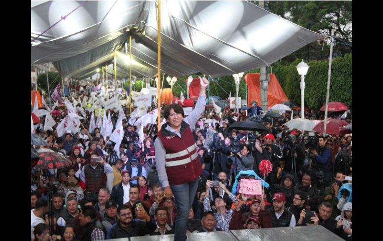 TEXCOCO, ESTADO DE MÉXICO (31/MAY/2017).- La candidata del Movimiento Regeneración Nacional (Morena) a la gubernatura del Estado de México, Delfina Gómez, reiteró su llamado a salir desde temprano a votar este 4 de junio y su convocatoria a las autoridades electorales a ser observadores de la contienda electoral y actuar ante irregularidades. Al encabezar su cierre de campaña en los municipios de Chicoloapan y Texcoco, acompañada por diputados locales, líderes de Morena de diversas entidades, así como del actor Carlos Bonavides, aseguró que la militancia de Morena es gente con ideales que busca el cambio, jóvenes y adultos mayores que participan. Exhortó a la población a invitar a sus vecinos, amigos y compañeros a ir a votar, y a cuidar las casillas, y pidió a las autoridades electorales hacer su trabajo y sancionar las irregularidades que se presenten. Pese a la presencia de lluvia ligera, la gente se dio cita en la explana municipal de Texcoco, donde antes del evento el grupo musical La Sonora Dinamita animó el lugar, y Delfina Gómez agradeció el apoyo a los militantes de diferentes partidos políticos y al Partido del Trabajo (PT) por sumarse a su campaña. Abundó que a lo largo de casi 60 días de campaña vivió varias experiencias de alegría, y tristeza que pudo superar, y está lista para gobernar la entidad mexiquense con el apoyo de la ciudadanía participativa. En ese sentido, destacó que integrará a su proyecto de gobierno las más de 300 propuestas en materia de salud, educación y otras que le proporcionó la ciudadanía cuando visitó los 125 municipios. En el municipio de Chicoloapan, en un terreno baldío en la Unidad Habitacional Costitlán, se concentraron los vecinos, luego de que no les permitieran realizar el cierre en el centro de ese municipio, y en su discurso Delfina Gómez recordó que una de las primeras acciones que realizará al frente del gobierno será incrementar el apoyo a las personas adultas mayores. Asimismo, reducirá el salario a funcionarios de primer nivel, empezando por el suyo, secretarios y directores; trabajará en favor de la educación, salud, recuperación de espacios públicos, generación de empleos y mayor seguridad. A su vez, el excandidato del PT, Óscar González Yáñez, convocó a la militancia de su partido a votar este 4 de junio por Morena y reiteró que el apoyar a ese partido es en beneficio de los mexiquenses que quieren la transformación de la entidad. En su oportunidad, el dirigente estatal de Morena, Horacio Duarte, agradeció el apoyo a Morena y convocó a votar este domingo.