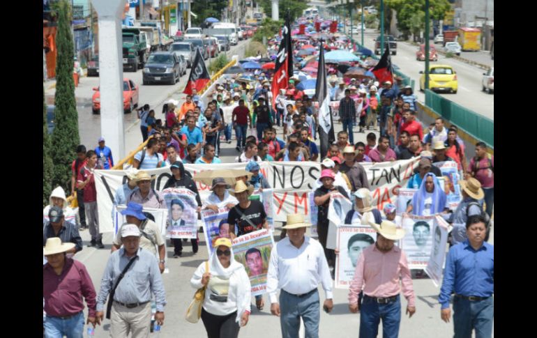 CHILPANCINGO, GUERRERO (15/SEP/2016).- Maestros de la CETEG, padres de familia de los 43 normalistas desaparecidos, y estudiantes de Ayotzinapa, marcharon por la autopista Cuernavaca-Acapulco en demanda de la presentación con vida de los 43 jóvenes, así como por la derogación de la reforma educativa porque, como lo dijo la madre de familia María de Jesús Latempa, "con esa reforma no tienen un futuro los hijos de los pobres, sólo van a estudiar los hijos de los ricos que tienen dinero".La marcha inicio aproximadamente a las 12:00 horas desde la estatua al general Nicolás Bravo, ubicada al norte de esta capital y de ahí avanzaron hacia la autopista Cuernavaca-Acapulco, en la que en estos momentos vienen caminando rumbo al Congreso local donde van a realizar un mitín en el que solicitarán el apoyo de diputadas y diputados para que la reforma educativa sea derogada.Al pasar frente a la 35 Zona Militar, los inconformes hicieron un alto para realizar un mitín en el que acusaron que fueron los militares los que desaparecieron a los 43 jóvenes normalistas, y demandaron que permitan sea interrogados los elementos del 27 Batallón de Infantería destacamentados en Iguala con la finalidad de que se sepa la verdad porque como lo aseguró María de Jesús, madre del estudiante desaparecido José Eduardo Bartolo, el gobierno solo les ha mentido sobre el paradero en los 43 jóvenes normalistas.La señora denunció que el gobierno ha mantenido una persecución en contra de ellos y desde luego aseguró que con la desaparición de los 43 normalistas “nos causaron mucho daño, mucho dolor por lo que sostuvo que este 16 de septiembre no será un día de fiesta sino de protesta y propuso que en el Grito en lugar de "Viva México", se grite "¡Vivan los 43!" y terminó con la consigna “Vivos se los llevaron, vivos los queremos”.