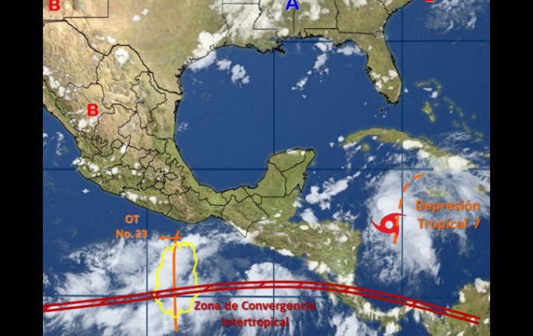 CIUDAD DE MÉXICO (06/AGO/2017).- El Servicio Meteorológico Nacional (SMN) informó que a las 16:00 horas, tiempo del centro de México, en el Océano Atlántico se desarrolló la Depresión Tropical 7, cuya trayectoria se prevé que sea hacía la Península de Yucatán.El sistema se localiza en el centro del Mar Caribe, aproximadamente a 745 kilómetros al este-sureste de Chetumal, Quintana Roo, y tiene vientos máximos sostenidos de 55 kilómetros por hora, rachas de 75 kilómetros por hora y desplazamiento al oeste-noroeste, hacia la Península de Yucatán, a 19 km/h.El organismo dependiente de la Comisión Nacional del Agua (Conagua), mantiene estrecha vigilancia sobre el sistema y recomienda a la población estar atentos a los avisos que emita Protección Civil.La Conagua y el SMN exhortan a la población a mantenerse informada sobre las condiciones meteorológicas mediante las páginas de internet www.gob.mx/conagua y http://smn.conagua.gob.mx, así como en las cuentas de Twitter @conagua_mx y @conagua_clima y de Facebook.Activan Plan Marina en Quintana RooLa 11 Zona Naval, con sede en Chetumal informó en un comunicado oficial la activación del Plan Marina en su fase preventiva, con el fin de reducir riesgos y estar listos para proporcionar apoyo a la población civil ante la presencia de este fenómeno hidrometeorológico.También recomendó a la población estar atenta a la información oficial que se emita sobre este sistema tropical a través de ellos, Protección Civil y autoridades estatales y municipales.