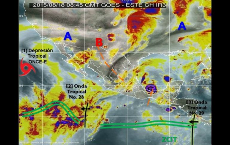 México | La depresión tropical Once-E mantiene su desplazamiento con dirección noroeste Depresión tropical disminuye intensidad al oeste de Baja California La depresión tropical Once-E mantiene su desplazamiento con dirección noroeste Por: NTX 18 de agosto de 2015 - 06:57 hs CIUDAD DE MÉXICO (18/AGO/2015).- La depresión tropical Once-E se degradó a baja remanente al oeste de Baja California y mantiene su desplazamiento con dirección noroeste. El Servicio Meteorológico Nacional ( SMN) indicó que el meteoro, a las 04:00 horas se ubicó a mil 100 kilómetros al oeste-suroeste de Punta Eugenia, Baja California Sur y a mil 610 kilómetros al oeste de Cabo San Lucas, Baja California Sur. Su desplazamiento es con dirección noroeste a 26 kilómetros por hora con vientos máximos sostenidos de 45 kilómetros por hora y rachas de 65 kilómetros por hora. El Meteorológico recomienda tomar precauciones por lluvias en las zonas de los estados mencionados, así como viento y oleaje elvado y atender las indicaciones del Sistema Nacional de Protección Civil. Temas Estados Clima Baja California Baja California Sur SMN Lluvias en el país Recibe las últimas noticias en tu e-mail Todo lo que necesitas saber para comenzar tu día Registrarse implica aceptar los Términos y Condiciones