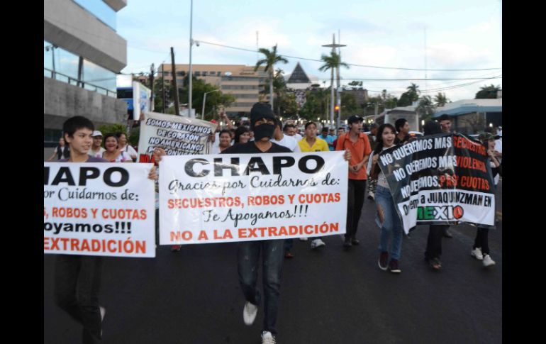 México | Exigen que Guzmán Loera no sea extraditado a EU Desafían a policías y marchan otra vez por el 'Chapo' en Culiacán Exigen que Guzmán Loera no sea extraditado a EU Por: SUN 2 de marzo de 2014 - 20:31 hs Manifestantes agradecen al 'Chapo' por 'protegerlos de secuestros y extorsiones'. SUN / CULIACÁN, SINALOA (02/FEB/2014).- Hombres, mujeres y adolescentes, con pancartas, escritas con plumón negro, desafiaron a las autoridades policiacas y volvieron a marchar en Culiacán y Guamúchil, para exigir que Joaquín Guzmán Loera no sea extraditado a los Estados Unidos. Pese a los operativos policiacos en los que se detuvo a 170 personas, entre ellas a varias mujeres, no se logró disuadir a un nutrido grupo que improvisó una nueva ruta y enfilaron rumbo al templo de la Lomita, sin lograr su propósito. La Secretaria de Seguridad Pública informó que entre los detenidos, se encuentran cinco personas, a las cuales se les encontró armas de fuego cortas y cuatro vehículos con reporte de robo, por lo que fueron turnados al Ministerio Público. Antes de la hora prevista y en un punto distinto a la convocatoria, cerca de 400 personas, se organizaron e iniciaron el desfile por la avenida Emiliano Zapata, rumbo al templo de la Lomita, dadas las detenciones que efectuaban las corporaciones policiacas. Bajo el grito de "viva el Chapo", "Viva el Chapo", el contingente avanzo, encabezado por varios jóvenes que portaban una especie de bandera con el texto:"Somos mexicanos de Corazón, No Americanos por Convicción". "No a la extradición"; "Queremos al Chapo en nuestra Nación" También, portaban pancartas con los mensajes: "Aunque el Chapo ahorita no está en Culiacán apoyamos a sus descendientes"; "No a la extradición del Chapo. Desde muy temprano, docena de jóvenes de ambos sexos, vestidos con camisetas color blanco, fueron obligados por un grupo mixto de policías a retirase de la capilla de Malverde, lugar ubicado como el punto de concentración a partir de las 17:00 horas. En ese lugar, fueron detenidos los primeros ocho jóvenes por negarse a despejar el área y enfrentar a los agentes, por lo que fueron remitidos a la barandilla. Según la invitación que circuló desde el viernes pasado en redes sociales, presuntamente, Ivan Archivaldo Guzmán, les ofreció a los asistentes otorgarles dinero, regalos, camisetas y comida, bajo el compromiso de no provocar desmanes en el evento. Las personas retiradas de la capilla de Malverde, no abandonaron la zona, se concentraron en el exterior de una plaza comercial, ubicada a unos cuantos metros del lugar, en espera de mayor número de asistentes. Su presencia motivó que el personal de seguridad de la Plaza Fiesta, colocara una especie de barrera con los carritos del súper, en su entrada principal, para impedir que estos se introdujeran en busca de refugio. En esa zona, el Subsecretario de Seguridad Pública del Estado, Héctor Manuel Castillo Medina reveló que fueron detenidas cinco personas con armas de fuego y vehículos con reporte de robo, por lo que fueron remitidos a las autoridades judiciales. Pese a la presencia disuasiva de las corporaciones policiacas empeñadas a impedir la celebración de la segunda marcha, a favor del Chapo Guzmán, hombres y mujeres de distintas edades y vestimentas, buscaron concentraciones alternas, una de ellas, el templo de la Lomita. .Cerca de ese lugar, jóvenes de ambos sexos, con camisetas con el número 701, con una libreta en mano, levantaron una lista de los asistentes, a los cuales se les distribuyó agua y presuntamente se les pagó mil pesos por su presencia en la marcha. En la ciudad de Guamúchil, municipio de Salvador Alvarado, la policía municipal se vio obligada a prender sus torretas para acallar los gritos de "Chapo", "Chapo" que emitieron durante un largo recorrido cerca de quinientas personas que participaron. Pese a que las autoridades municipales, prohibieron a los concesionarios del transporte urbano y rural, prestar servicios de traslados a participantes de dicho movimiento, en dicha ciudad, en número de asistentes fue muy alto. Las autoridades de Guamúchil, reportaron que durante el desfile de personas que apoyaron a Guzmán Loera, no se presentaron incidentes. Temas Crimen Organizado Joaquín Chapo Guzmán Manifestaciones en México Lee También "La Mañanera" de Sheinbaum de hoy viernes 10 de octubre de 2025 La distopía de Clara Brugada Naasón, Covarrubias, Omar… El efecto Donald Trump Recibe las últimas noticias en tu e-mail Todo lo que necesitas saber para comenzar tu día Registrarse implica aceptar los Términos y Condiciones
