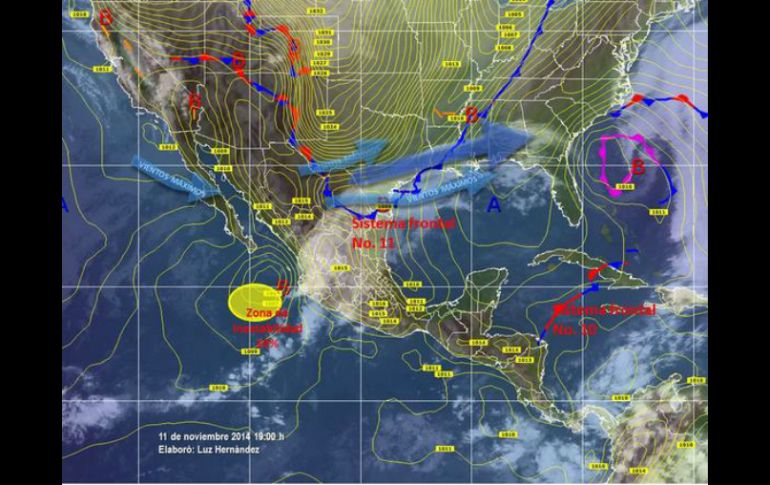 México | Habrá precipitaciones fuertes en Tamaulipas y leves en Sonora Descenderá temperatura en varios estados por frente frío 11 La Conagua alerta que el norte, noreste, centro y oriente del país tendrán un marcado descenso de temperatura Por: SUN 11 de noviembre de 2014 - 20:22 hs Prevén que el frente frío se extenderá mañana miércoles sobre el norte del Golfo de México. ESPECIAL / @conagua_clima CIUDAD DE MÉXICO (11/NOV/2014).- La Comisión Nacional del Agua ( Conagua) alertó que la llegada del frente frío número 11, que se extiende sobre Nuevo León, Coahuila y Chihuahua, provocará un notable descenso de temperatura, así como vientos de hasta 50 kilómetros por hora (km/h) y precipitaciones fuertes en Tamaulipas y leves en Sonora, Coahuila y la entidad neoleonesa, donde también se prevén bancos de niebla. Mediante un comunicado, informó que la intensa masa de aire polar asociada a ese sistema frontal propiciará entre este martes y mañana un marcado descenso en la temperatura y posibles bancos de niebla en el norte, noreste, centro y oriente de la República Mexicana, así como evento de norte, con vientos de hasta 60 km/h en la costa de Tamaulipas y Veracruz. El Sistema Meteorológico Nacional prevé que este frente frío se extenderá mañana miércoles sobre el norte del Golfo de México, el norte de Veracruz y el centro de México, y se prolongará en Chihuahua, lo que favorecerá el aumento de nublados y lluvias muy fuertes en Veracruz, fuertes en Coahuila, Nuevo León, Tamaulipas y Zacatecas, y ligeras en San Luis Potosí. Por otro lado, informó que la zona de inestabilidad ubicada en el océano Pacífico, con 10 por ciento de potencial de desarrollo ciclónico en las próximas 48 horas, se localiza aproximadamente a 280 kilómetros al oeste de Manzanillo, Colima, con vientos de 35 km/h, rachas de hasta 55 km/h y movimiento al este-noreste. Este sistema provocará lluvias fuertes en áreas de Nayarit y Jalisco; fuertes en Baja California Sur, Sinaloa, Durango, Michoacán y Zacatecas, y leves en Aguascalientes y Colima. A su vez, el ingreso de humedad del océano Pacífico y el golfo de México, favorecerá lluvias fuertes en Guerrero y ligeras en San Luis Potosí, Guanajuato, Querétaro, Hidalgo, Estado de México, Distrito Federal, Morelos, Tlaxcala, Puebla, Veracruz, Oaxaca, Tabasco y Chiapas. Temas Conagua Estados Frío Clima SMN Lee También "Sonia" SUBE potencia; así se desplazaría por México Hay mejoría, pero el futuro es “incierto” México hará ajustes a los aranceles a países asiáticos Narcos ofrecen hasta 50 mil dólares por matar a agentes fronterizos y del ICE, según el DHS Recibe las últimas noticias en tu e-mail Todo lo que necesitas saber para comenzar tu día Registrarse implica aceptar los Términos y Condiciones