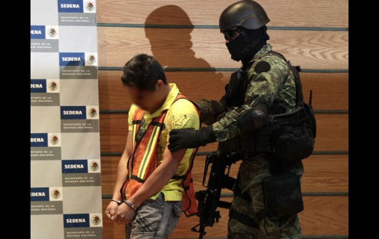 México | Fueron decomisadas armas de grueso calibre, drogas y vehículos blindados Desmantela Ejército célula del crimen organizado en Michoacán En el operativo, fueron decomisadas armas de grueso calibre, drogas y vehículos blindados Por: NTX 13 de diciembre de 2011 - 17:25 hs De los detenidos cuatro son michoacanos y uno más es originario del estado de Sinaloa. ARCHIVO / MORELIA, MICHOACÁN (13/DIC/2011).- Cinco integrantes de una célula de narcotraficantes, que operaba en el occidente de Michoacán, fueron detenidos hoy por elementos del Ejército mexicano en el municipio de Ecuandureo, informaron fuentes militares. Detallaron que en el operativo fueron decomisados cinco rifles de grueso calibre, cinco armas cortas, más de mil cartuchos útiles, casi 30 kilogramos de marihuana y dos camionetas, una de ellas blindada. La detención de los presuntos criminales se dio 24 horas después de que en la zona se registró un enfrentamiento, en el que murieron dos presuntos sicarios. Sobre las detenciones de hoy, el Ejército mexicano dio a conocer que los delincuentes fueron sorprendidos cuando circulaban por un camino vecinal y no tuvieron tiempo para reaccionar contra las autoridades. Los detenidos fueron identificados como Jesús Martín Marín Quintero, de 18 años de edad; Leonardo Serrano Covarrubias, de 26; Júpiter Araujo, de 21; José Antonio Mauricio Matías, de 18, y Gerardo Huerta Ortega, de 18. De los detenidos cuatro son michoacanos y uno más es originario del estado de Sinaloa. Temas Sedena Crimen Organizado Michoacán Lee También Elementos de seguridad detienen a traficante sueco en Cancún SMN advierte: Tormenta Raymond dejará lluvias intensas y fuertes vientos en 4 estados Instalarán en el Consejo Regulador del Tequila oficina de "oriGIn América Latina" Aseguran armamento y vehículo con blindaje artesanal en Quitupan Recibe las últimas noticias en tu e-mail Todo lo que necesitas saber para comenzar tu día Registrarse implica aceptar los Términos y Condiciones