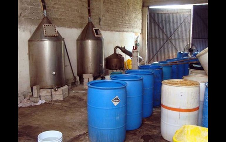México | Hasta el momento, no se repórtan detenidos Desmantelan dos laboratorios clandestinos en Michoacán En un segundo inmueble los militares aseguraron 300 kilogramos de la droga conocida como Cristal, además de dos mil 355 litros de sustancias químicas desconocidas Por: SUN 19 de noviembre de 2011 - 10:10 hs Más de cinco mil litros de sustancias químicas fueron hallandas en el lugar. ARCHIVO / CIUDAD DE MÉXICO (19/NOV/2011).- Elementos del Ejército desmantelaron en Michoacán dos laboratorios clandestinos en los que se producía droga sintética, aseguraron 300 kilogramos del estupefaciente conocido como "cristal" y más de cinco mil litros de sustancias químicas, aunque no se reportaron detenidos. La Secretaría de la Defensa Nacional (Sedena) informó que elementos de la 21 Zona Militar efectuaron reconocimientos terrestres en las inmediaciones de los municipios de Tiquicheo y de San Juan Nuevo Parangaricutiro, que permitieron localizar las viviendas habilitadas como laboratorios clandestinos para producir droga, Se detalló que en un primer laboratorio se incautaron cinco litros de anfetamina liquida; dos mil 240 litros de anhídrido acético en 10 tambos y seis bidones; 400 litros de alcohol isopropílico; así como mil 275 kilogramos de sosa cáustica, y equipo para fabricar droga sintética. En un segundo inmueble los militares aseguraron 300 kilogramos de la droga conocida como "Cristal", además de dos mil 355 litros de sustancias químicas desconocidas, así como otros químicos cuyo peso aún está pendiente de determinar. Temas Narcotráfico Crimen Organizado Michoacán Recibe las últimas noticias en tu e-mail Todo lo que necesitas saber para comenzar tu día Registrarse implica aceptar los Términos y Condiciones