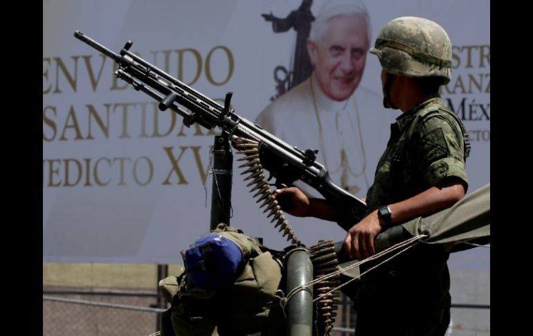 México | Participan militares, Estado Mayor, policías de todos los niveles y civiles Despliegan 13 mil agentes en operativo por el Papa Participan militares, elementos del Estado Mayor, policías de todos los niveles y civiles Por: SUN 23 de marzo de 2012 - 13:03 hs En Guanajuato están instalados 30 puestos de control vehicular controlados por militares. AFP / LEÓN, GUANAJUATO (23/MAR/2012).- Cerca de 13 mil elementos del Ejército, así como del Estado Mayor Presidencial (EMP), de las policías federal, estatal y municipales, además de civiles, se encargarán de cuidar la seguridad del Papa Benedicto XVI quien arribará hoy viernes a las 16:30 a esta entidad, de acuerdo con información de autoridades locales y federales. Están instalados 30 puestos de control vehicular que son operados por militares y de la Policía Federal, 10 de los cuales se ubican en vías de acceso a esta ciudad; se pusieron arcos de rayos X y gamma, similares a los que se encuentran en algunos hoteles, como donde se ubica el Centro Internacional de Prensa dispuesto para más de mil 500 periodistas. En el Parque Bicentenario el Pontífice encabezará una misa ante más de 300 mil personas y que concelebrará con 300 obispos, para la cual se tienen disponibles dos mil 20 hostias y siete litros de vino para consagrar. Se instalarán 14 mil sillas, una letrina por cada 100 personas y elementos del EMP trabajan desde el miércoles en ese Parque con más de una veintena de perros detectores de explosivos, materia en la que transportaron un laboratorio a este estado como parte de las medidas de seguridad. Desde las 7:00 horas de hoy, 45 mil jóvenes voluntarios comenzaron a conformar las vallas para seguridad de las personas que se acerquen a la ruta de 38 kilómetros que recorrerá el Papa luego de la ceremonia de bienvenida en el aeropuerto al Colegio Miraflores, donde pernoctará tres noches y será atendido por cuatro religiosas. En total se tienen registrados 105 mil voluntarios para las vallas, informó el coordinador de la logística de la visita pastoral, Roberto Delgado, quien señaló que se estiman que estarán presentes para ver al Pontífice aproximadamente un millón 700 mil personas, además de unos tres mil sacerdotes que estarán en diferentes actos del Vicario de Cristo. Residencia blindada Los cuerpos de seguridad literalmente blindaron las inmediaciones del Colegio Miraflores, donde se hospedará el Papa Benedicto XVI durante su estancia en México que inicia este viernes y concluirá el lunes 26. Elementos de la Policía Federal y del Ejército mexicano resguardan desde la tarde del jueves el perímetro de la institución, que han delimitado con vallas de metal. A su presencia se suman unidades de la Cruz Roja Mexicana y del Cuerpo de Bomberos de León. Luego de arribar al aeropuerto de esta ciudad, cerca de las 16:30 horas local, y participar en una ceremonia de bienvenida el líder católico abordará el "papamóvil" en el que recorrerá 34 kilómetros hasta esta institución. Durante el recorrido el pontífice saludará a miles de personas que formarán las vallas humanas. En las primeras horas de este viernes el movimiento de ciudadanos a lo largo del recorrido del vehículo pontificio era más bien escaso y la circulación del tráfico fluida. Temas Ejército Estados Guanajuato .El Papa Benedicto XVI en México Recibe las últimas noticias en tu e-mail Todo lo que necesitas saber para comenzar tu día Registrarse implica aceptar los Términos y Condiciones