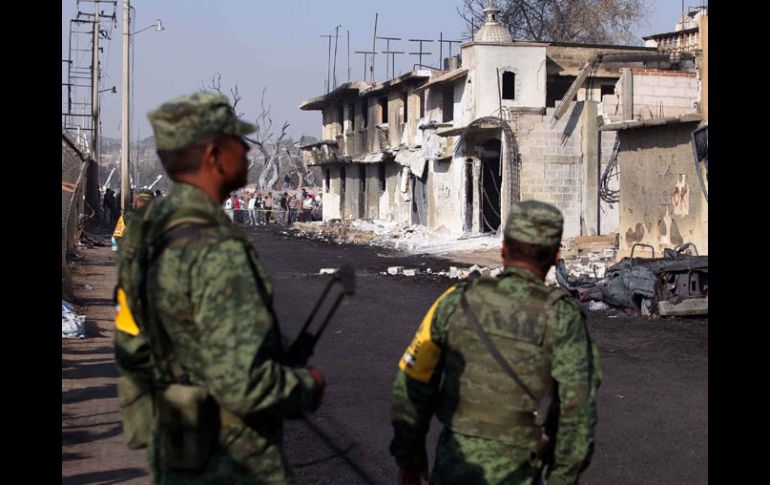México | La Sedena iImplementa plan de auxilio a la zona de explosión en Puebla Despliegan a 159 militares en San Martín Texmelucan La Sedena implementa plan de auxilio a la zona de explosión en Puebla Por: NTX 19 de diciembre de 2010 - 21:22 hs Los militares trabajan en coordinación con autoridades federales, estatales y municipales. EL UNIVERSAL / CIUDAD DE MÉXICO (19/DIC/2010).- La Secretaría de la Defensa Nacional (Sedena) puso en operación el Plan de Auxilio a la Población Civil en Casos de Desastre con 159 elementos en San Martín Texmelucan, Puebla, tras la explosión ocurrida este domingo en un oleoducto de Petróleos Mexicanos (Pemex). La dependencia federal detalló en un comunicado que en ese dispositivo también llamado Plan DN-III-E participan un general, un jefe, siete oficiales y 150 elementos de tropa adscritos a la 25 Zona Militar. Indicó que en el área del siniestro, ubicada en la colonia Solidaridad del municipio referido, los efectivos militares trabajan en estrecha coordinación con autoridades federales, estatales y municipales, a fin de brindar auxilio a la población afectada. Para brindar apoyo en caso de emergencias y denuncias, la Sedena puso a disposición de la ciudadanía los números telefónicos: 01 800 832 4771 y 01 [222] 235 66 41 Así como los correos electrónicos: denuncia.sdn@mail.sedena.gob.mx, denuncia25zm@hotmail.com y denuncia25zm@yahoo.com. Temas Gobierno de México Sedena Puebla Explosiones Lee También Leche para el Bienestar lleva agua potable a comunidades afectadas por el huracán Raymond Día de Muertos 2025: ¿Dónde comprar disfraces baratos en CDMX? ¿A qué hora es y dónde ver EN VIVO el GP de México 2025 de F1? Recibe las últimas noticias en tu e-mail Todo lo que necesitas saber para comenzar tu día Registrarse implica aceptar los Términos y Condiciones