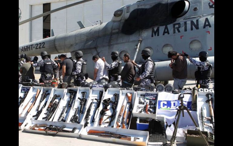 México | Operativos realizados por el personal de Marina en las últimas 48 horas resultaron en las capturas Detienen a 30 del cártel del Golfo en Tamaulipas También decomisaron dos lanzacohetes y 53 armas, 43 de éstas largas, además de casi 10 mil cartuchos útiles Por: SUN 29 de septiembre de 2010 - 17:05 hs La Secretaría de Marina de México detuvo a 30 presuntos integrantes del Cártel del Golfo. EL UNIVERSAL / CIUDAD DE MÉXICO (29/SEP/2010).- Infantes de Marina asestaron un nuevo golpe a la estructura del cártel del Golfo al detener a un total de 30 de sus integrantes, entre ellos una mujer, y un arsenal que incluye dos lanzacohetes y 53 armas, 43 de éstas largas, además de casi 10 mil cartuchos útiles. La captura de los presuntos delincuentes y el armamento fue resultado de una serie de operativos realizados por el personal de Marina en las últimas 48 horas. Estas acciones se derivaron del enfrentamiento que sostuvieran infantes de marina con miembros del mismo grupo criminal hace tres días y en los que murieron un marino, ocho delincuentes y se detuvo a nueve más de éstos últimos. En esa acción, se aseguró 24 armas largas, un tubo lanzacohetes, cinco armas cortas, más de cuatro mil 400 cartuchos útiles de diversos calibres, nueve granadas de fragmentación, dinero y equipo táctico. En conferencia de prensa, la Secretaría de Marina (Semar) informó que para lograr la captura de este grupo de delincuentes que será puesto a disposición de la Procuraduría General de la República (PGR), se contó con el intercambio de datos con el Centro de Investigación y Seguridad Nacional (Cisen), así como de labores de inteligencia que permitieron ubicar los puntos donde fueron detenidos cada uno de los presuntos delincuentes. Luego de que los detenidos fueron presentados en las instalaciones de la Base Aeronaval de México, con sede en el aeropuerto Internacional de la Ciudad de México, la Semar estableció que con esas capturas se avanza en el objetivo de la desarticulación de las redes operativa de los grupo criminales, el cual es uno de los cinco ejes de la estrategia nacional por la seguridad e igualmente en el mantenimiento del Estado de derecho. Junto con los presuntos integrantes del cártel del Golfo se mostró el arsenal que les fue asegurado. Entre éste se encuentran 43 armas largas, 10 armas cortas, dos lanzacohetes, un cohete, 318 cargadores, 24 granadas de mano, nueve mil 881 cartuchos útiles, 10 cascos antibalas, seis chalecos, 44 distintivos del cártel del Golfo, equipos de comunicación y uniformes tipo militar, más de 558 mil pesos mexicanos, 393 mil 343 dólares americanos, así como dos paquetes de aproximadamente un kilogramo cada uno de presunta cocaína, dos vehículos. Temas Narcotráfico Crimen Organizado Tamaulipas Lee También ¿Qué representa el amparo de Bermúdez Requena para la FGR? Falta muchísimo, pero vamos bien Hay vínculos “claros” entre Bermúdez y la delincuencia organizada Cae un integrante de célula delictiva de “Los Chapitos” Recibe las últimas noticias en tu e-mail Todo lo que necesitas saber para comenzar tu día Registrarse implica aceptar los Términos y Condiciones