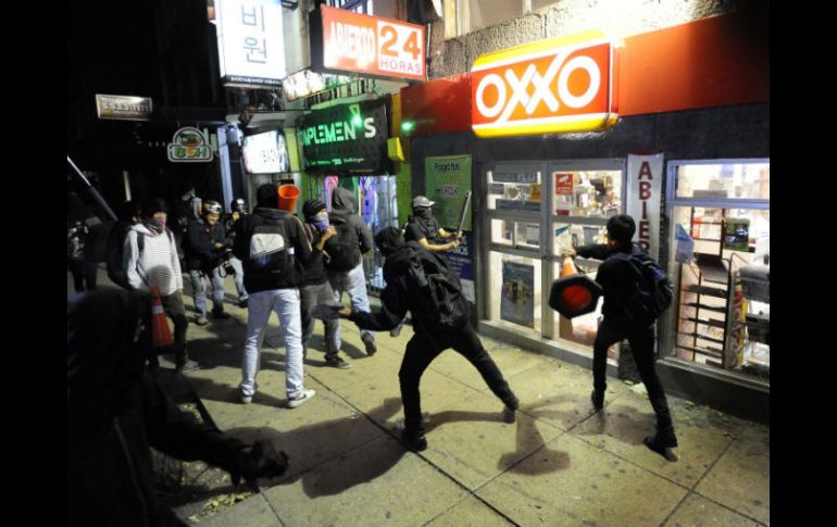 México | El gobierno capitalino informa que fueron arrestados por causar desmanes Detienen a tres por vandalismo en marcha del DF El gobierno capitalino informa que fueron arrestados por causar desmanes Por: SUN 1 de diciembre de 2014 - 22:00 hs CIUDAD DE MÉXICO (01/DIC/2014).- El gobierno capitalino informó que en la marcha de este lunes participaron siete mil personas y fueron detenidos tres hombres por actos vandálicos. A través de un comunicado destacó que el contingente que salió alrededor de las 17:00 horas del Zócalo hacia la columna del Ángel de la Independencia, se manifestó de forma pacífica. Sin embargo, al término del mitin en el Ángel, un grupo de personas encapuchadas provocó daños en siete sucursales bancarias y cuatro establecimientos mercantiles. De acuerdo con el gobierno capitalino, por estos hechos fueron presentados ante el Ministerio Público tres personas del sexo masculino, a fin de que se deslinden las responsabilidades correspondientes. Agregó que a través de la Subsecretaría de Control de Tránsito y de la Secretaría de Seguridad Pública (SSP-DF) se realizó un operativo para reducir las afectaciones viales y facilitar la movilidad en las zonas cercanas al paso de esta movilización. Temas SSPDF Estados Ciudad de México Manifestaciones en la Cd. de México Recibe las últimas noticias en tu e-mail Todo lo que necesitas saber para comenzar tu día Registrarse implica aceptar los Términos y Condiciones