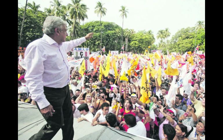 México | Andrés Manuel López Obrador menciona que triunfará en los comicios del domingo Dice que va tres puntos arriba de Peña Nieto Andrés Manuel López Obrador menciona que triunfará en los comicios del domingo Por: EL INFORMADOR 27 de junio de 2012 - 02:03 hs GUADALAJARA, JALISCO (27/JUN/2012).- El ánimo es positivo: el candidato del Movimiento Progresista a la Presidencia de la República, Andrés Manuel López Obrador, dice que ganará las elecciones de este domingo. “Y no es una pose, no es para animar; tenemos pruebas e hicimos un sondeo encuesta el fin de semana”, expuso ante los medios de comunicación en su último diálogo matutino en campaña con los representantes de la prensa. De visita en Guadalajara, el tabasqueño afirmó que recibiría ayer al mediodía los resultados de este último censo (que realizó parte de su equipo), y que los daría a conocer por la noche; sin embargo, hasta el cierre de la edición, y pese a que el candidato de izquierda tuvo otros eventos públicos durante el día, no mostró tal documento. Éste, según dijo, lo pondría tres puntos arriba del candidato priista Enrique Peña Nieto. Durante sus mítines en Toluca y Colima, el ex jefe de Gobierno del Distrito Federal insistió en que un grupo quiere imponer a Peña Nieto, pero reiteró que él va “para arriba” y que ganará la elección. Sin embargo, no volvió a hacer referencia al documento que supuestamente daría a conocer. Hugo ChávezNiega conocerlo El presidente de Venezuela, Hugo Chávez, aseguró que no conoce al candidato mexicano de izquierda, Andrés López Obrador, y señaló que quienes los vinculan están “usando” su imagen como lo hicieron cuando ocurrió el golpe de Estado contra el ex presidente Manuel Zelaya en Honduras. Chávez afirmó que desea lo mejor para México y para el candidato que salga electo, y se dijo dispuesto a mantener y mejorar las relaciones. Temas PRD Política AMLO Partido del Trabajo Elecciones México 2012 Movimiento Ciudadano Lee También Guadalajara inicia foros para actualizar Planes Parciales Estados Unidos revoca visa a Héctor Astudillo, exgobernador de Guerrero Clima en Ciudad de México hoy: el pronóstico para el jueves 16 de octubre de 2025 Detienen a segundo implicado en asesinato del abogado David Cohen Recibe las últimas noticias en tu e-mail Todo lo que necesitas saber para comenzar tu día Registrarse implica aceptar los Términos y Condiciones
