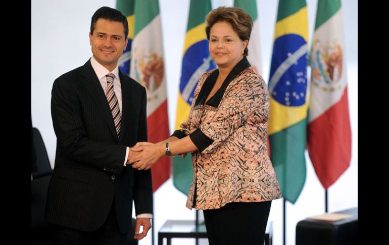 México | La reunión entre los políticos se llevó a cabo en privado Dilma Rousseff recibe a Peña Nieto en Brasilia La víspera, Peña Nieto rechazó una rivalidad económica entre México y Brasil. Asentó que las economías de ambos países son complementarias Por: SUN 20 de septiembre de 2012 - 13:45 hs Rousseff recibió al mandatario electo de México y posaron para los fotógrafos y cámaras de televisión. AFP / BRASILIA, BRASIL (20/SEP/2012).- Enrique Peña Nieto, presidente electo de México, llegó alrededor de las 14:00 horas de este jueves al Palacio de Gobierno Planalto, ubicado en la Plaza de los Tres Poderes, donde se reunió en privado con la presidenta de Brasil, Dilma Rousseff. Sin mayor protocolo, Peña Nieto ingresó al complejo donde despacha la mandataria de Brasil por un acceso lateral. En el cuarto piso, Rousseff recibió al mandatario electo y posaron para los fotógrafos y cámaras de televisión. La víspera, Peña Nieto rechazó una rivalidad económica entre México y Brasil. Asentó que las economías de ambos países son complementarias. "Son las dos economías más importantes de América Latina, creo que tenemos que alejarnos de un señalamiento, a veces de algunos constante, de querernos poner en competencia y rivalidad cuando realmente nuestras economías tienen una gran oportunidad para la complementariedad y para lograr una mayor integración que nos permita fortalecer o encontrar una mayor fortaleza en la integración de ambas economías", señaló. Al encuentro acompañan a Peña Nieto, su esposa Angélica Rivera, así como el coordinador para la Transición Gubernamental, Luis Videgaray, Emilio Lozoya Austin, vicecoordinador para Asuntos Internacionales, Ildefonso Guajardo, vicecoordinador de Política Económica y personal de la Embajada de México en Brasil. Temas Política Brasil Dilma Rousseff Lee También Trump ve oportunidad de firmar la paz con Irán, pero "primero Rusia" Trump pide indulto para Netanyahu en causas judiciales abiertas en Israel Macron tiene nuevo gabinete y enfrenta un complicado reto La aparente estabilidad mexicana Recibe las últimas noticias en tu e-mail Todo lo que necesitas saber para comenzar tu día Registrarse implica aceptar los Términos y Condiciones