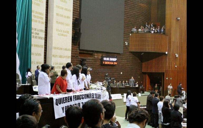 México | El pleno la avala con 351 votos a favor, 130 en contra y 10 abstenciones Diputados aprueban reforma laboral en lo general El pleno la avala con 351 votos a favor, mientras que se registraron 130 en contra y 10 abstenciones Por: NTX 28 de septiembre de 2012 - 16:42 hs Ante la toma de la tribuna, la presidencia de la Mesa Directiva dirigió la sesión desde un balcón. NTX / CIUDAD DE MÉXICO (28/SEP/2012).- El pleno de la Cámara de Diputados aprobó en lo general el dictamen de reforma laboral, que entre otros puntos contempla la regulación del llamado outsourcing, nuevas modalidades de contratación para incluir los periodos de prueba, contratos de capacitación inicial y para el trabajo de temporada. Durante la sesión de este viernes en el Palacio Legislativo de San Lázaro, interrumpida en dos ocasiones, el dictamen fue aprobado con 351 votos en favor, mientras que se registraron 130 en contra y 10 abstenciones. Además hubo más de 270 artículos en reserva para la discusión particular. Ante la toma de la tribuna por parte de un centenar de legisladores de izquierda, la presidencia de la Mesa Directiva, encabezada por Jesús Murillo Karam, dirigió la sesión desde un balcón y las posturas de las bancadas se fijaron desde las curules. Antes, integrantes del Movimiento de Regeneración Nacional (Morena) se introdujeron al Palacio Legislativo de San Lázaro y llegaron a unos metros del salón de plenos para lanzar consignas contra los legisladores del PRI y PAN. David de la Garza acusó que con ese proyecto se pondrían en riesgo los derechos de la clase obrera y señaló que los diputados debieron haber consultado a investigadores y especialistas en la materia. También rechazó que con esa iniciativa se generen más empleos para los jóvenes y se reduzca la pobreza entre la población. Temas Poder Legislativo Diputados Reforma Laboral Recibe las últimas noticias en tu e-mail Todo lo que necesitas saber para comenzar tu día Registrarse implica aceptar los Términos y Condiciones