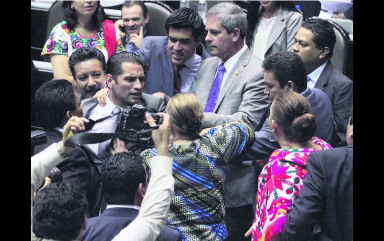 México | Disturbios en la glosa del Primer Informe de Gobierno Diputados arman zafarrancho Abordar el tema de política interior fue suficiente para que los legisladores se hicieran de palabras y golpes Por: NTX 13 de septiembre de 2013 - 03:33 hs La diputada panista Leonor Romero Sevilla (de espaldas) se enfrenta a Enrique Aubry, del Verde Ecologista. NTX / CIUDAD DE MÉXICO (13/SEP/2013).- Legisladores se enfrentan en plena sesión. Lo que comenzó como un ríspido debate entre priistas y panistas en la Cámara de Diputados por el tema de seguridad en la Glosa del Primer Informe de Gobierno de Enrique Peña Nieto, derivó en un conato de golpes. Cuando se debatía el tema de política interior, desde tribuna la diputada del PAN, Consuelo Argüelles Loya, consideró que a pesar de la actitud responsable de la oposición, el Gobierno no ha tenido acciones concretas en seguridad y señaló el surgimiento de grupos de autodefensa como una muestra de la falta de control. En respuesta, el legislador del PRI, Alejandro Moreno Cárdenas, reprochó la estrategia de seguridad de la administración pasada, y señaló que el actual Gobierno federal tiene una visión transformadora. Agregó: “No nos echen la culpa de su ineficiencia e ineficacia y de su falta de resultados para gobernar, por eso el pueblo de México les dio la espalda y perdieron la Presidencia de la República”. Desde su curul, el panista Gerardo Peña Avilés increpó al priista y visiblemente enojado se acercó hasta la tribuna. En tanto, el diputado del Verde Ecologista Enrique Aubry se acercó hasta las curules del PAN a reclamar, y se hizo de palabras con el legislador albiazul Germán Pacheco Díaz. A la discusión se sumó la panista de Tlaxcala, Leonor Romero Sevilla, quien gritó y manoteó al ecologista, hubo algunos empujones pero legisladores de ambos partidos intervinieron para evitar que el pleito pasara a mayores. El presidente de la Mesa Directiva, el panista Ricardo Anaya Cortés, llamó al orden y siguió dirigiendo la sesión, para retomar el tema sobre política exterior. Sin embargo, volvió a ser interrumpido. El coordinador del PVEM, Arturo Escobar y Mejía Berdeja, se lanzaron una que otra directa. El vicecoordinador de Movimiento Ciudadano, Ricardo Mejía Berdeja, comparó al PAN y el PRI con un “mal matrimonio”. EL DATOPrueba del pleito Ricardo Anaya Cortés, presidente de la Mesa Directiva,les recordó a los diputados que todas las intervenciones sobre este enfrentamiento quedaron registradas en el Diario de Debates. Temas Legislativo Cámara de Diputados Partidos políticos Lee También ¿Dónde ver EN VIVO el partido amistoso México vs Ecuador? Reforma Judicial en Jalisco: el riesgo de legislar con prisa Partidos piden eliminar el doble financiamiento Morena y aliados aprueban en comisiones dictamen de reforma a Ley de Amparo Recibe las últimas noticias en tu e-mail Todo lo que necesitas saber para comenzar tu día Registrarse implica aceptar los Términos y Condiciones