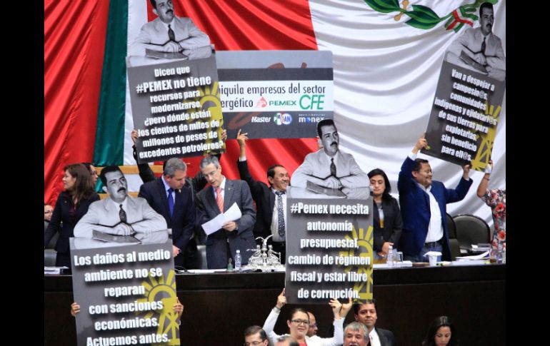 México | Aprueban en lo general el primer dictamen que expide leyes de inversión extranjera Diputados avalan ley de Hidrocarburos Aprueban en lo general el primer dictamen que expide las leyes de Inversión Extranjera, la Minera, y de Asociaciones Público Privadas. Por: SUN 28 de julio de 2014 - 17:10 hs Legisladores opositores montaron mantas en tribuna en protesta contra leyes secundarias de la reforma energética. SUN / CIUDAD DE MÉXICO (28/JUL/2014).- La Cámara de Diputados aprobó en lo general, con 330 votos a favor y 129 en contra, el dictamen a la minuta que expide la Ley de Hidrocarburos y que reforma diversas disposiciones de las leyes de Inversión Extranjera, la Minera, y de Asociaciones Público Privadas. Por su parte, legisladores opositores montaron mantas en tribuna en protesta contra leyes secundarias de la reforma energética. El dictamen aprobado establece que corresponde a la nación la propiedad directa de todos los hidrocarburos que se encuentren en el subsuelo del territorio nacional, incluyendo la plataforma continental y la zona económica exclusiva situada fuera del mar territorial y adyacente a éste, en mantos o yacimientos, cualquiera que sea su estado físico. SABER MÁSLos dictámenes que votarán La Ley de Hidrocarburos. La Ley de la Industria Eléctrica y la Ley de Energía Geotérmica. La Ley de Petróleos Mexicanos y la Ley de la Comisión Federal de Electricidad. Ley Federal de las Entidades Paraestatales, la Ley de Adquisiciones Arrendamientos y Servicios del Sector Público y la Ley de Obras Públicas. La Ley de los Órganos Reguladores Coordinados en Materia Energética, que expide la Ley de la Agencia Nacional de Seguridad Industrial y de Protección al Medio Ambiente. La Ley de Ingresos sobre Hidrocarburos. Ley del Fondo Mexicano del Petróleo. Las Comisiones Unidas de Presupuesto y Cuenta Pública y de Energía, discuten el proyecto de decreto por el que se reforman, adicionan y derogan diversas disposiciones de la Ley Federal de Presupuesto y Responsabilidad Hacendaria y de la Ley General de Deuda Pública. CRÓNICAMuestran repudio de 10 minutos En una “mini” toma de tribuna quedaron las acciones de repudio que anunciaron los perredistas contra las leyes secundarias en materia energética. Ayer en el pleno de San Lázaro había expectativa sobre estas acciones anunciadas, ante la posibilidad —planteada por ellos mismos— de tomar la tribuna, para impedir la votación. Sin embargo, nada de ello sucedió. Las acciones contra las leyes energéticas se concentraron en el pleno durante poco menos de 10 minutos, tiempo que duró la votación en lo general del dictamen que crea la Ley de Hidrocarburos. Durante la ocupación temporal de la tribuna, los legisladores desplegaron una enorme manta con la leyenda: “Ni los veo, ni los oigo, sólo vendo”. Venía acompañada con las siluetas de los ex presidentes Carlos Salinas de Gortari y Vicente Fox, así como del actual mandatario, Enrique Peña Nieto. Abajo se podían ver los logotipos de las transnacionales petroleras Shell, Chevron y Mobil. Los inconformes también mostraron grandes cartulinas, su versión de las tarjetas de prepago del grupo financiero Monex, que rezaban: “(Esta tarjeta) legaliza el despojo de tierras” y en la parte inferior de la misma se alcanzaba a leer “Master PRIAN”. Vino el intercambio de quienes tomaban la tribuna y los que estaban en sus curules. Los inconformes gritaban “traidores”, “viva Lázaro Cárdenas”, “Pemexgate”, mientras entonaban el Himno Nacional y del lado contrario —la mayoría encabezada por el PRI— gritaba “Línea 12, Línea 12”, en alusión a las fallas del Metro, en las administraciones del PRD. Otra estrategia de la izquierda fue mostrar las figuras de los ex presidentes Lázaro Cárdenas y Benito Juárez, para criticar a sus adversarios, que finalmente usaron su mayoría para aplastar con sus votos a los inconformes. Campesinos expresan su preocupación El subsecretario de Gobernación, Luis Enrique Miranda, el titular de la secretaría de Energía, Pedro Joaquín Coldwell y organizaciones campesinas sostuvieron una reunión para explicar los alcances de las leyes secundarias de la reforma energética. Alfonso Ramírez Cuéllar, líder de El Barzón, expresó que hay dos temas de preocupación entre los campesinos: el retiro de los subsidios al diésel y el agua que se usará en las zonas donde se pretende explotar gas shale por medio de la fractura hidráulica (fracking). “Es una región que abarca buena parte del país y de los acuíferos sigue tomando la gente agua para el consumo y para el riego agrícola. Y con el fracking dejará devastado una superficie muy importante dedicada al cultivo de alimentos”. Señaló que las leyes complementarias carecen de un proyecto integral para los campesinos, porque no están claras las salvaguardas ambientales. Tampoco está garantizado que la actividad agrícola se siga realizando, porque esto traerá mayores costos de producción. “Esto va a redundar en alimentos más caros y una producción más pequeña alimenticia”. Temas Reforma Energética Poder Legislativo Cámara de Diputados Lee También Lista de productos que tendrán nuevos impuestos o aumentos en 2026 Senado aprueba reforma a Ley de Amparo: uso digital y freno a evasión fiscal Gobernador reconoce diálogo con coordinadores parlamentarios Comisión de la Cámara de Diputados aprueba aumento a refrescos y cigarros Recibe las últimas noticias en tu e-mail Todo lo que necesitas saber para comenzar tu día Registrarse implica aceptar los Términos y Condiciones